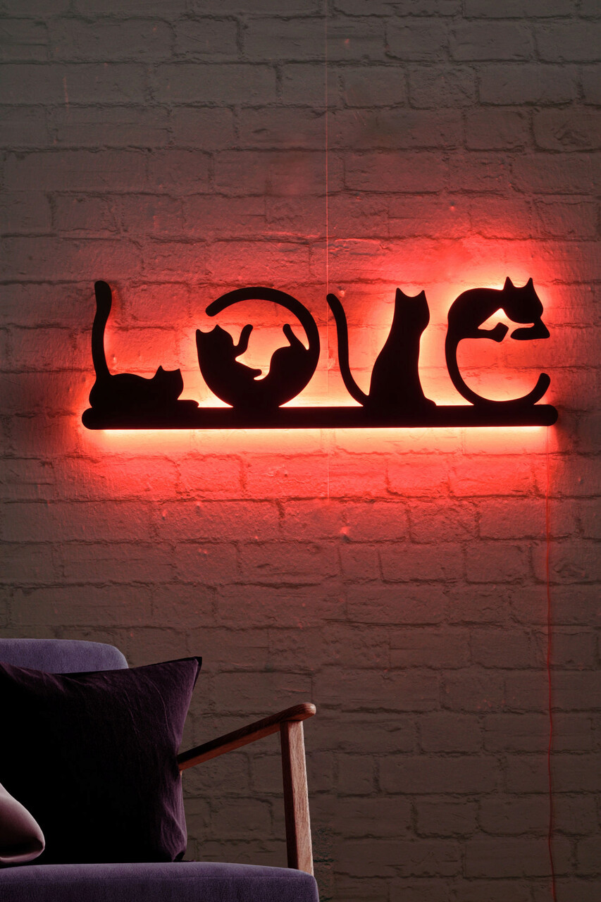 Decoratiune luminoasa LED, Cat Love, MDF, 60 LED-uri, Rosu