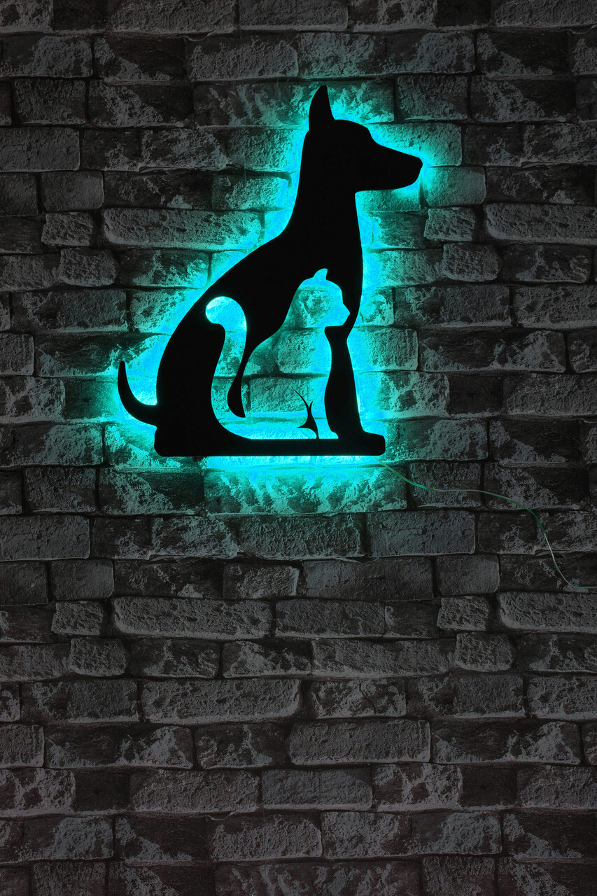 Decoratiune luminoasa LED, Cat n Dog, MDF, 60 LED-uri, Albastru