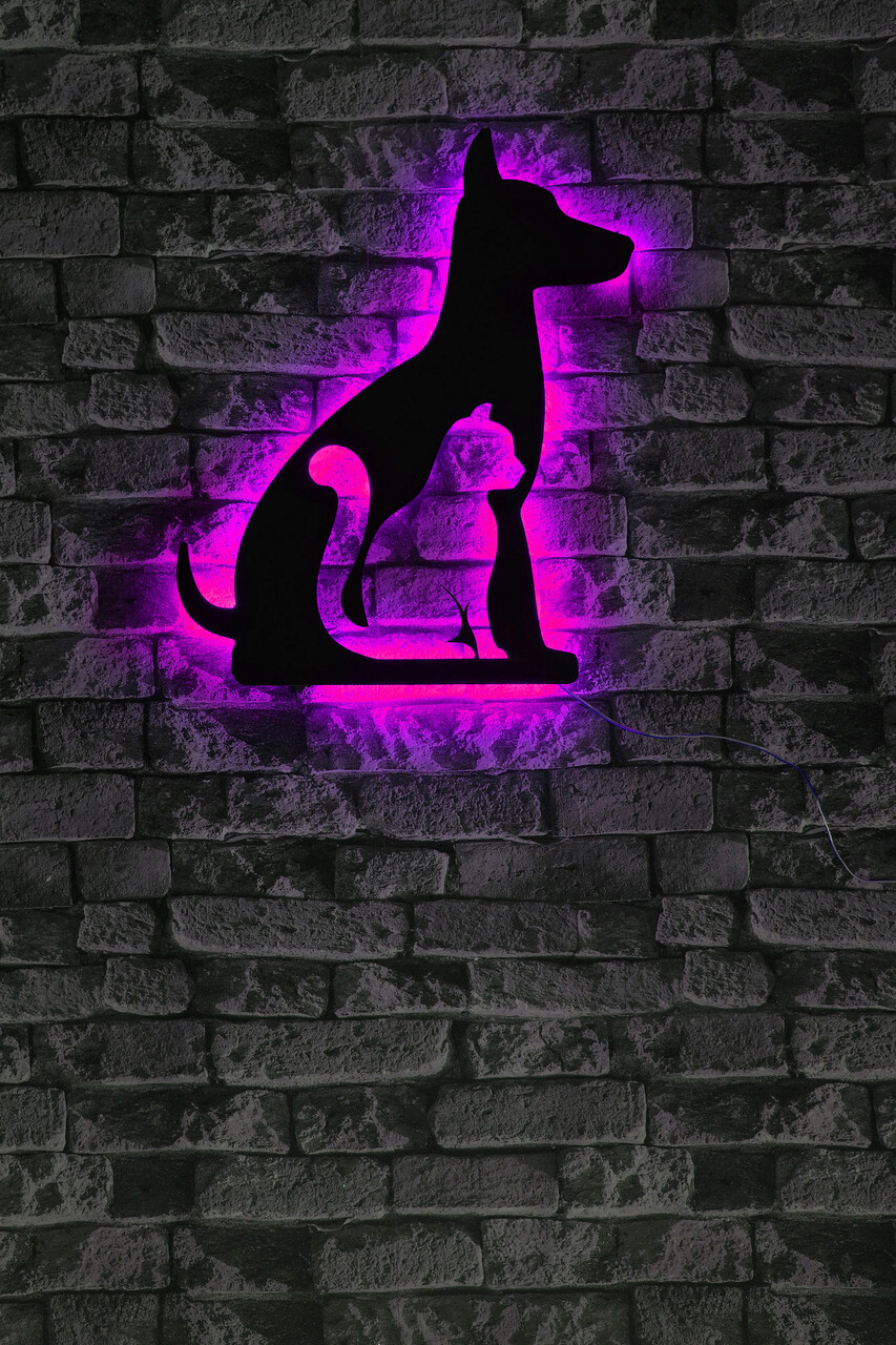 Decoratiune luminoasa LED, Cat n Dog, MDF, 60 LED-uri, Roz