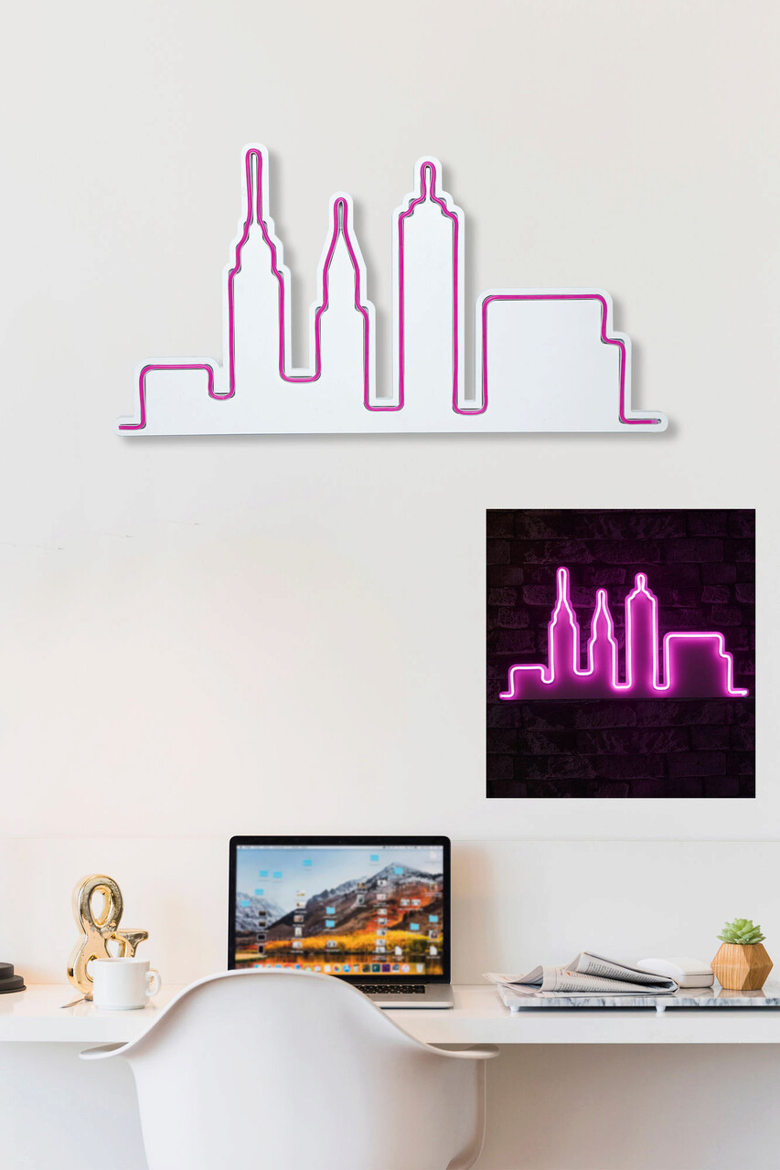 Decoratiune luminoasa LED, City Skyline, Benzi flexibile de neon, DC 12 V, Roz