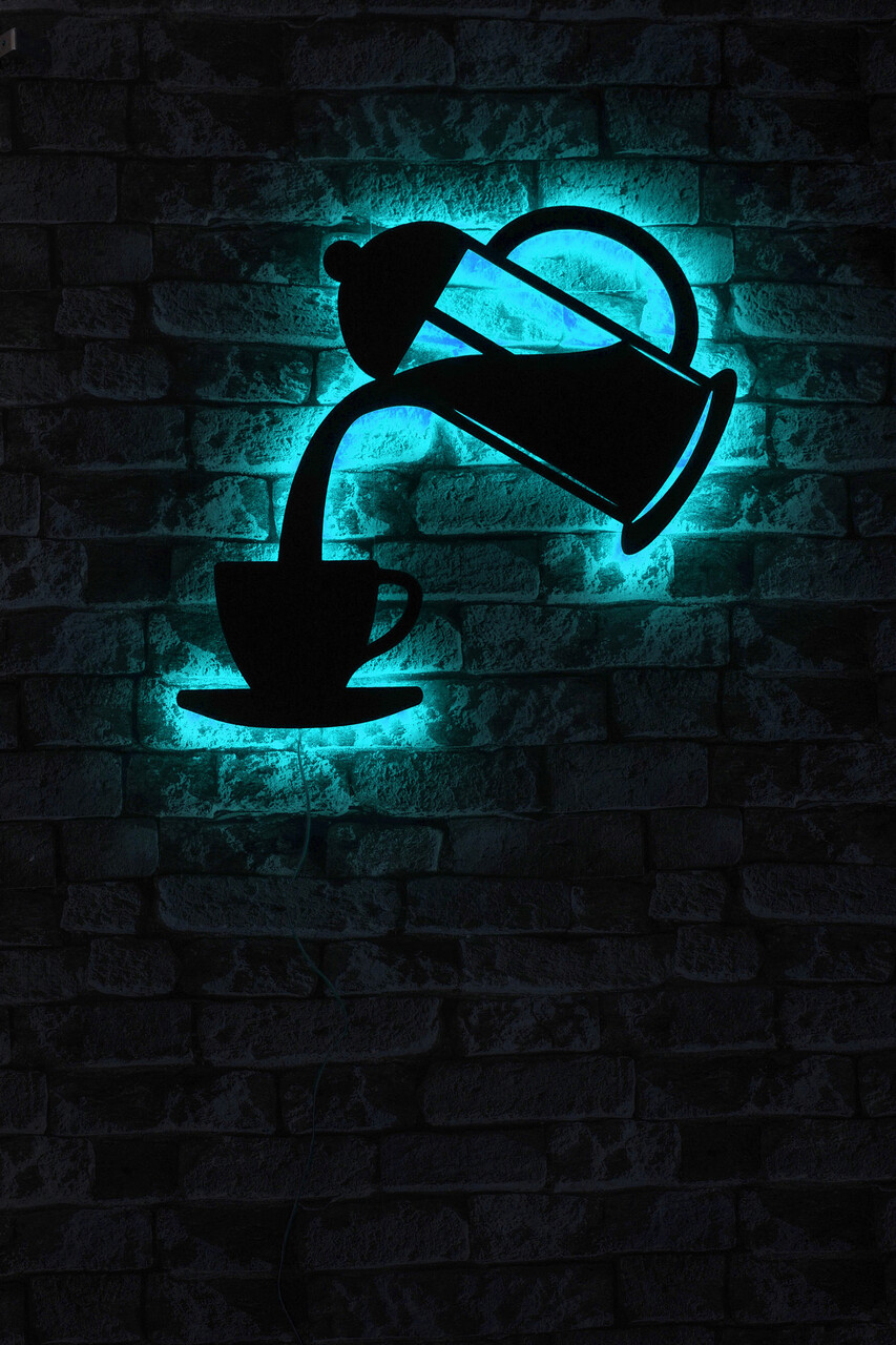 Decoratiune luminoasa LED, Coffee, MDF, 60 LED-uri, Albastru
