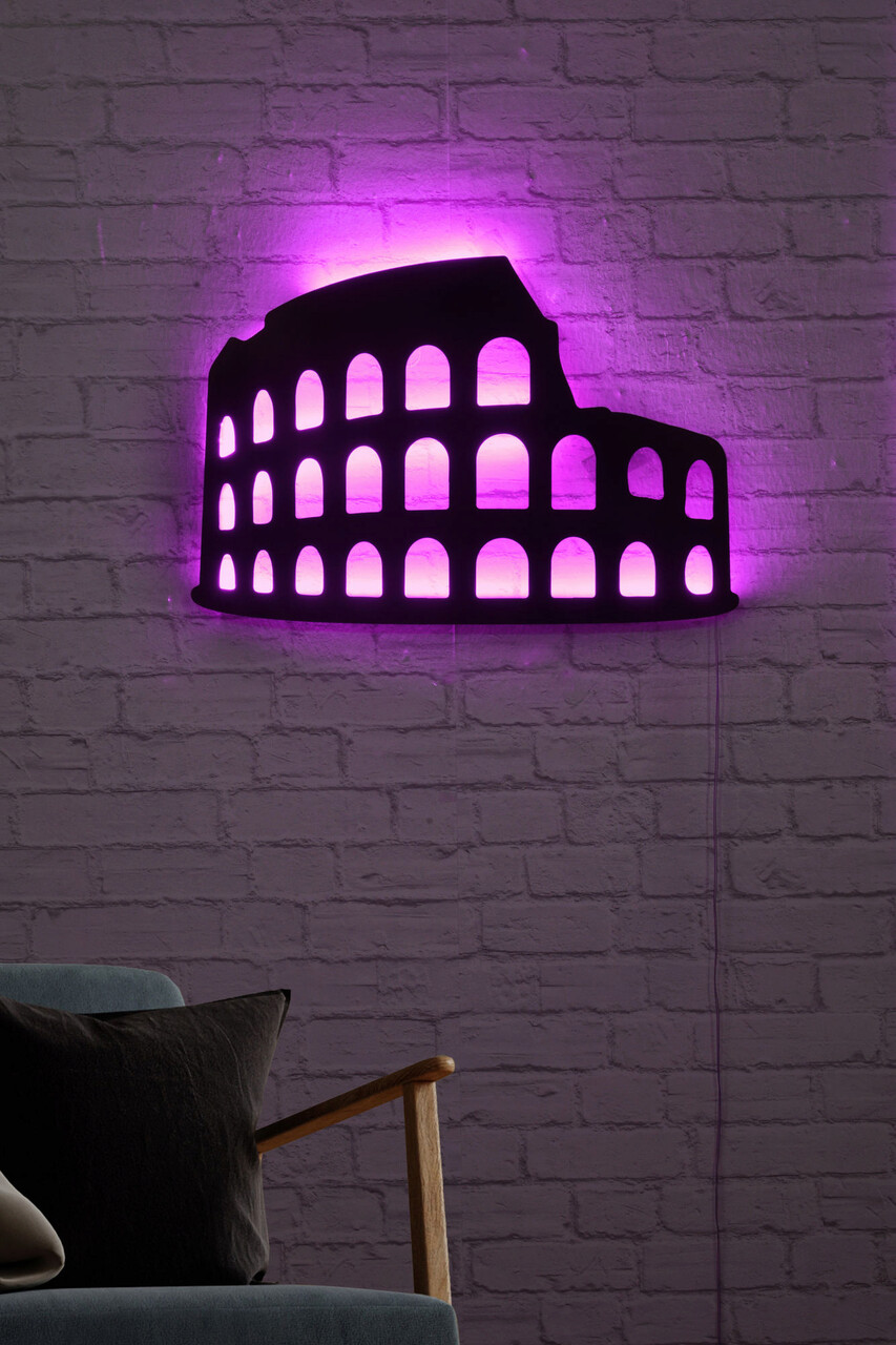 Decoratiune luminoasa LED, Colosseum, MDF, 60 LED-uri, Roz