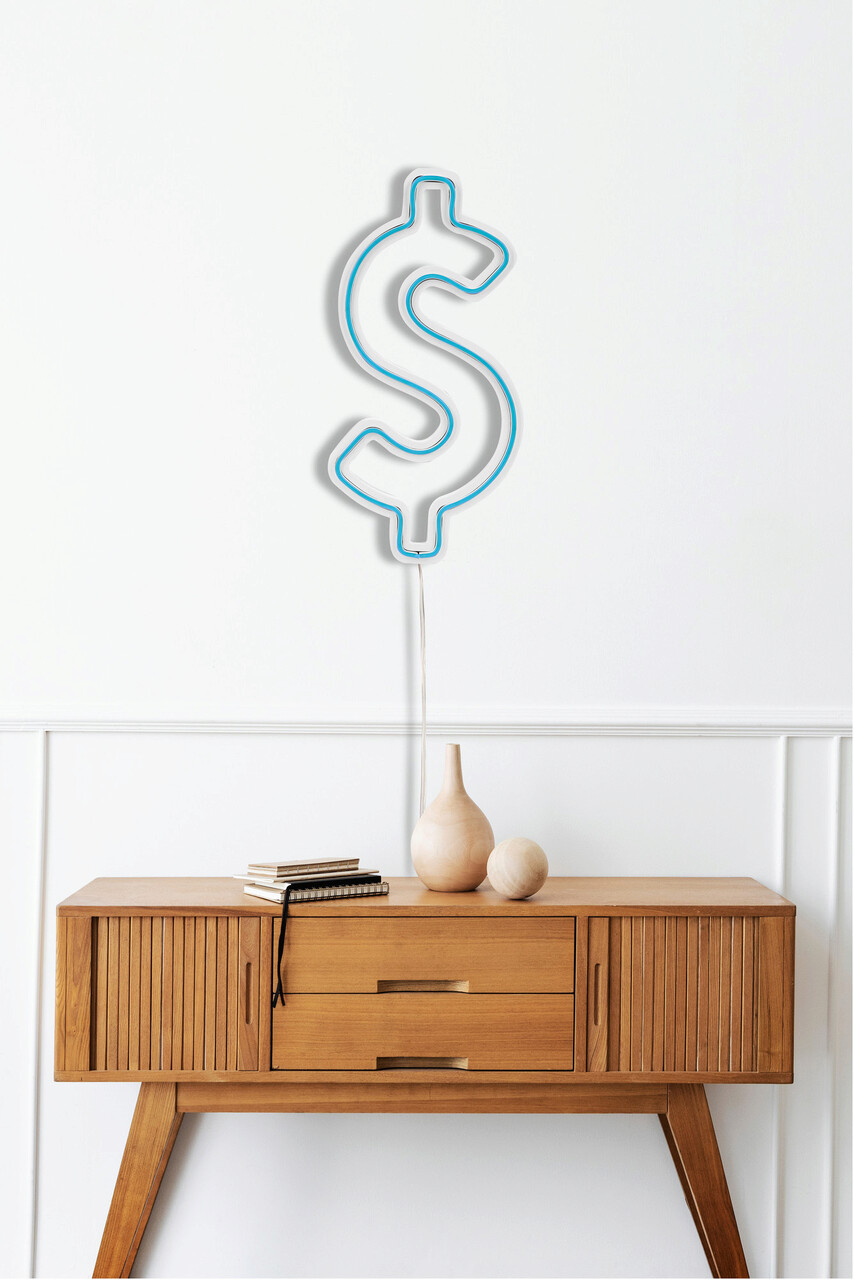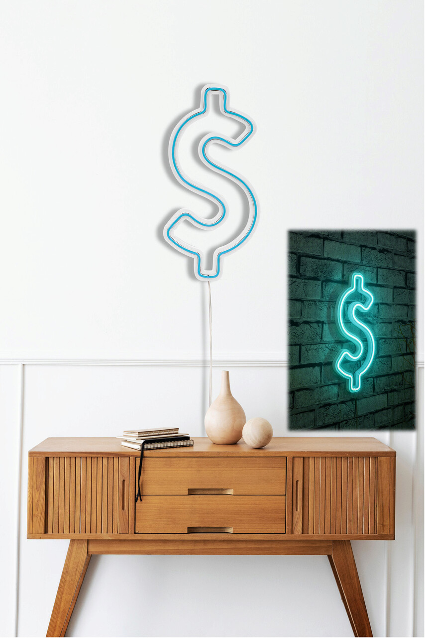 Decoratiune luminoasa LED, Dollar Sign, Benzi flexibile de neon, DC 12 V, Albastru