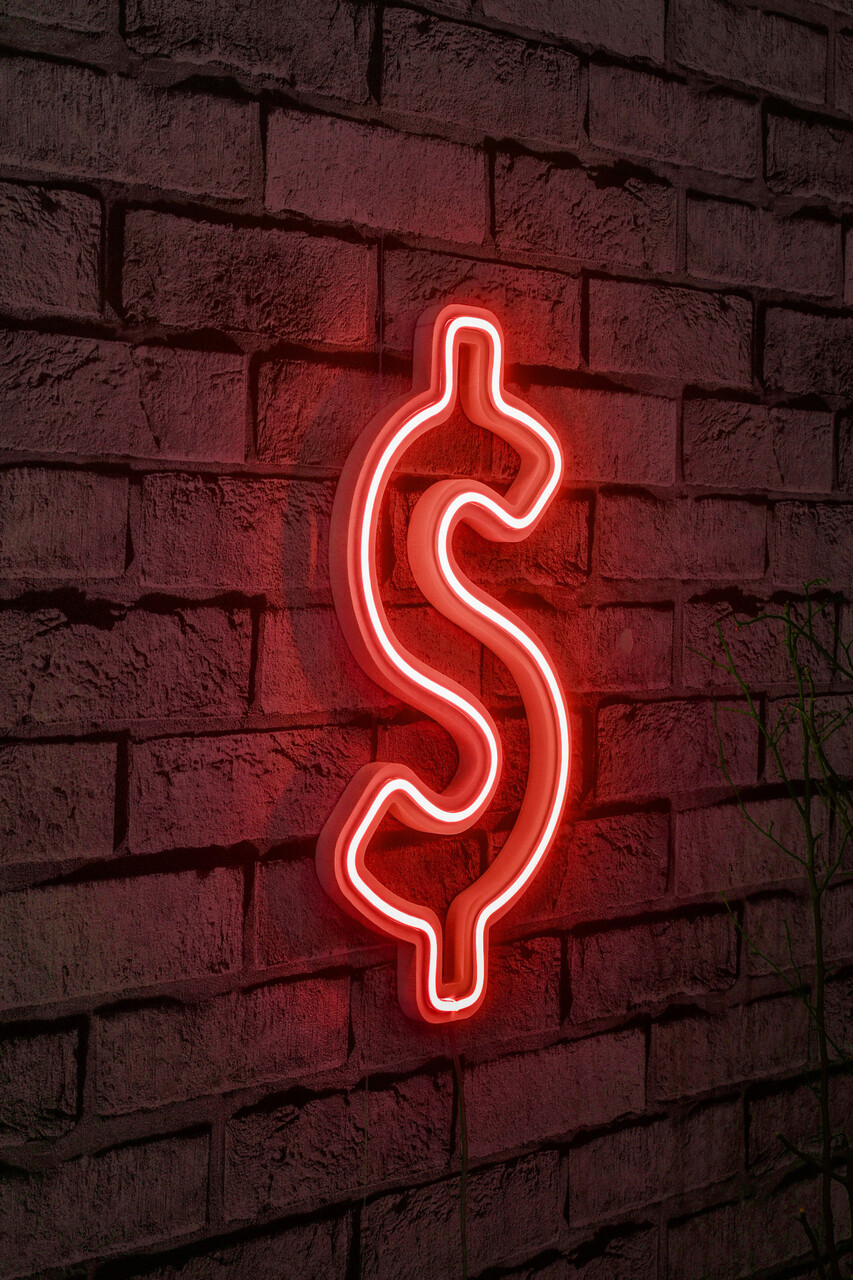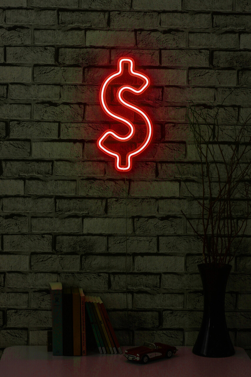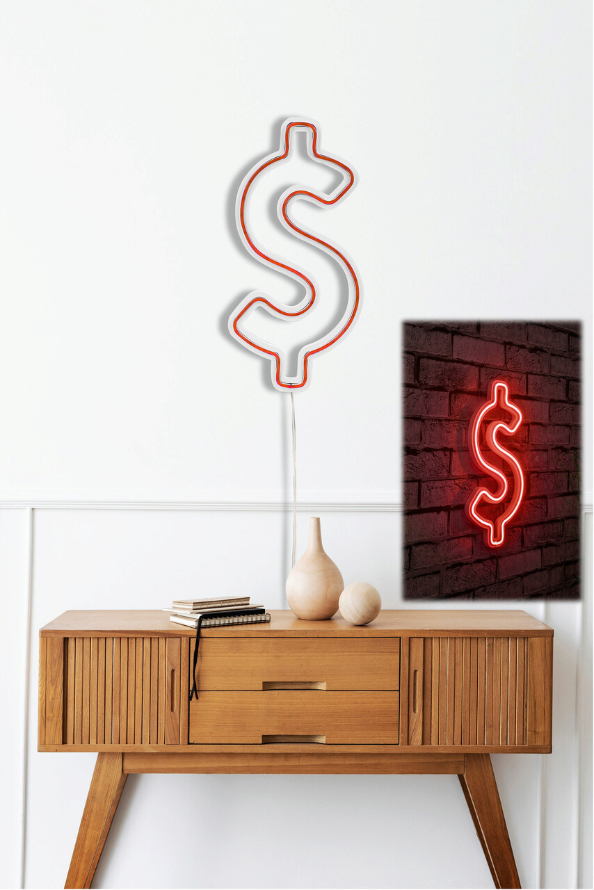 Decoratiune luminoasa LED, Dollar Sign, Benzi flexibile de neon, DC 12 V, Rosu
