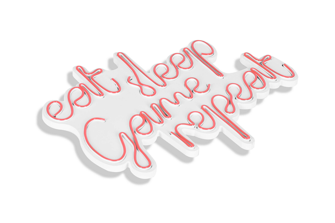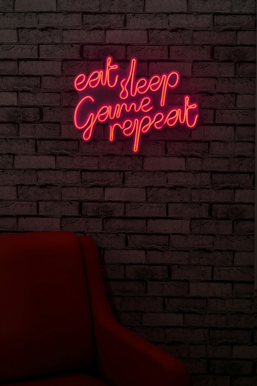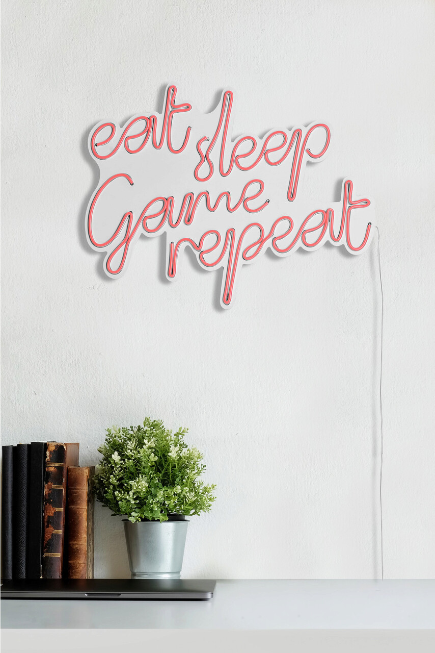 Decoratiune luminoasa LED, eat sleep game repeat, Benzi flexibile de neon, DC 12 V, Roz