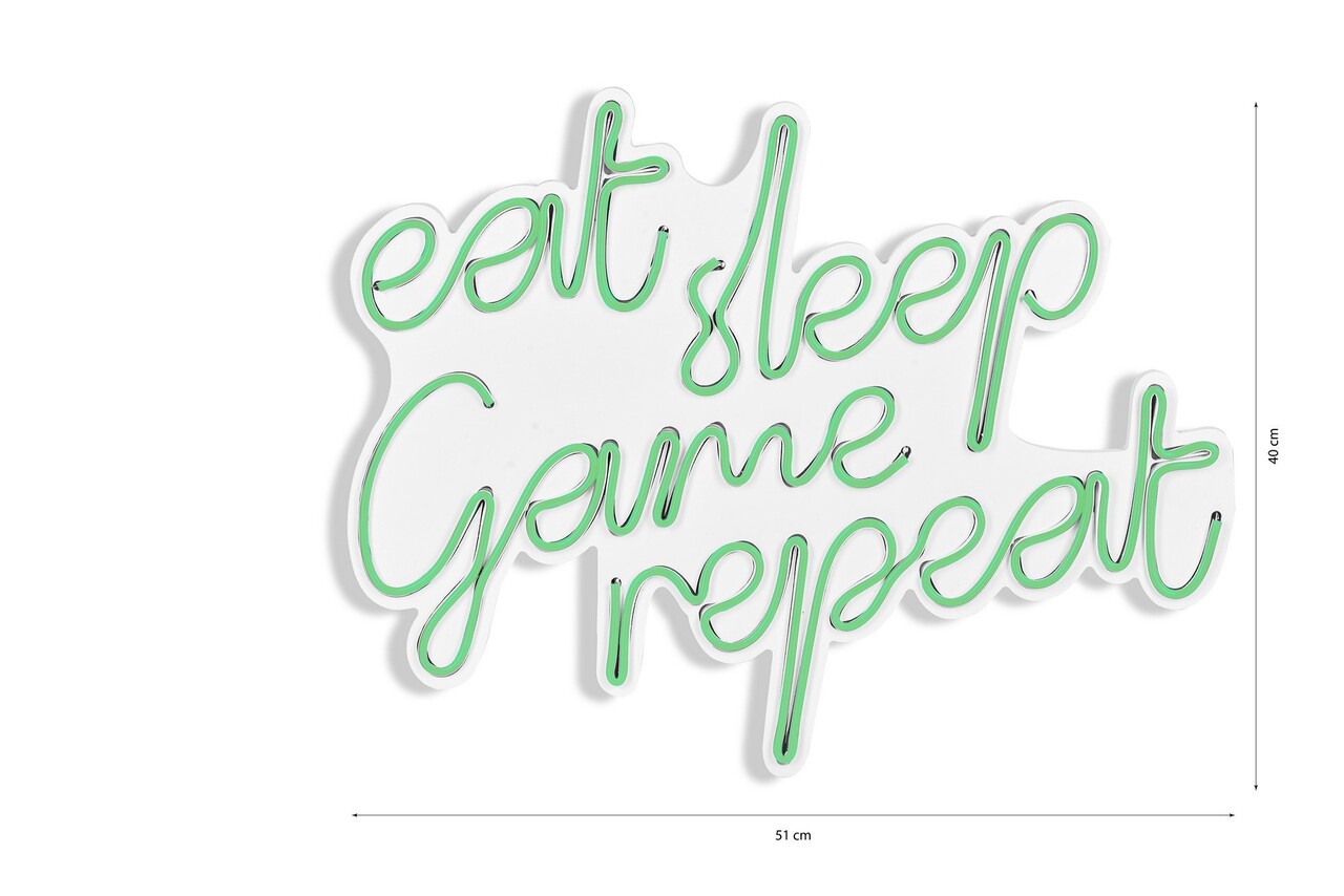 Decoratiune luminoasa LED, eat sleep game repeat, DC 12 V, Verde