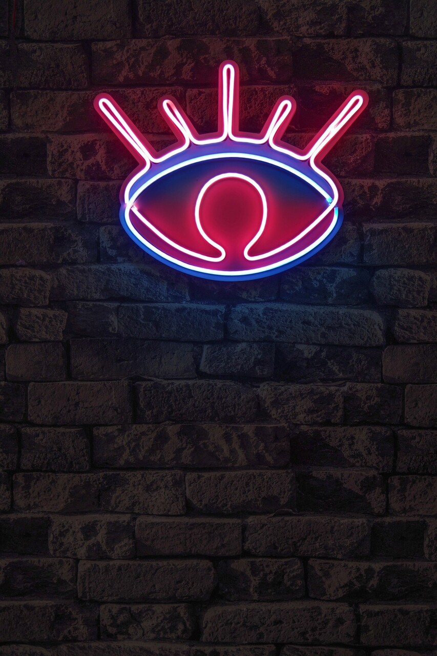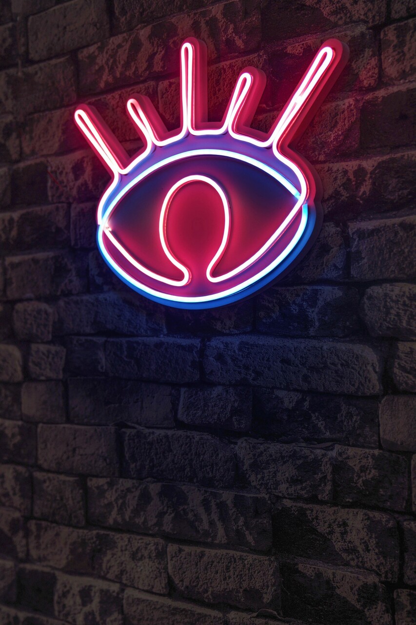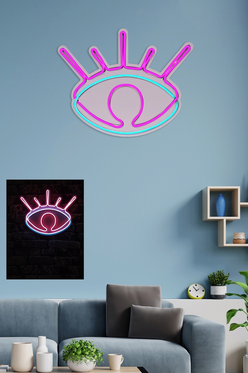 Decoratiune luminoasa LED, Evil Eye, Benzi flexibile de neon, DC 12 V, Roz / Albastru