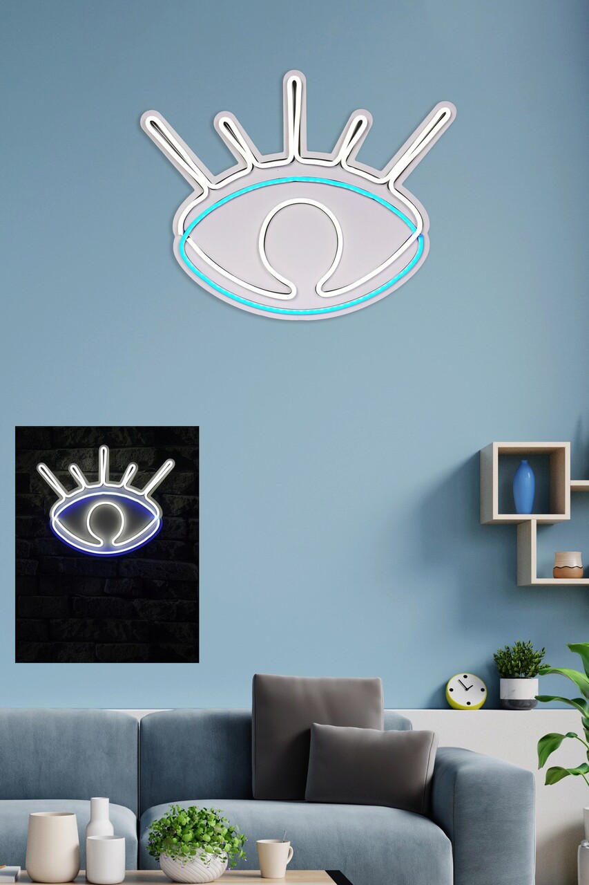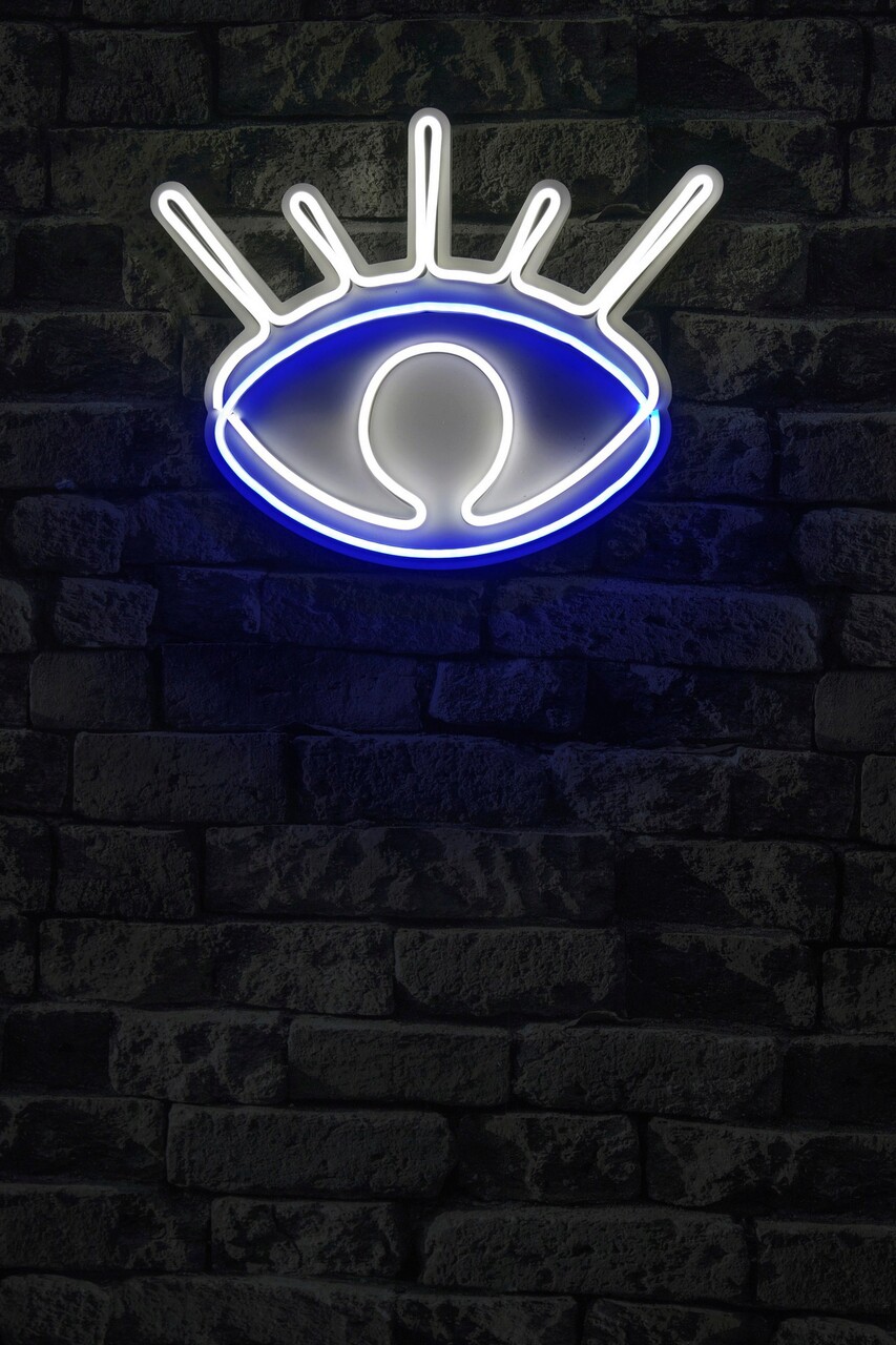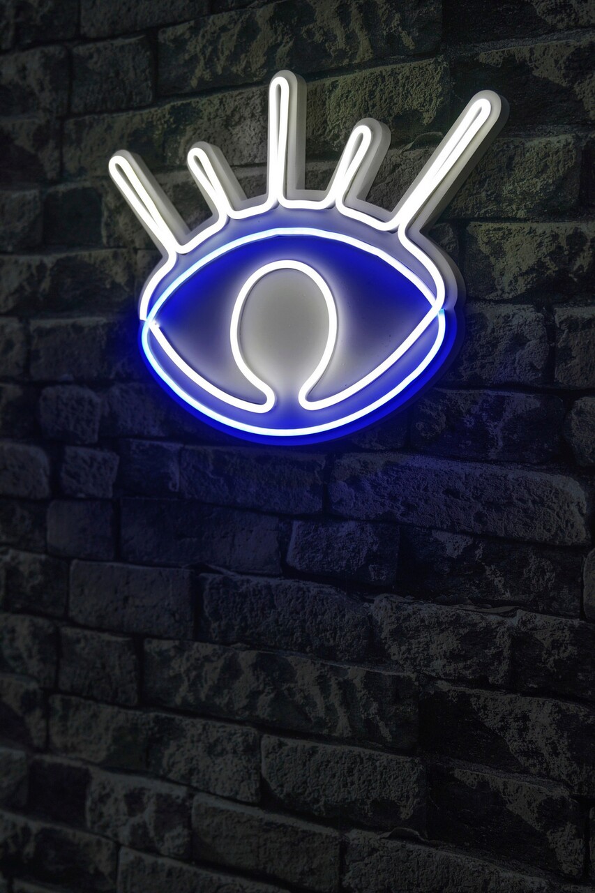 Decoratiune luminoasa LED, Evil Eye, Benzi flexibile de neon, DC 12 V, Alb/Albastru