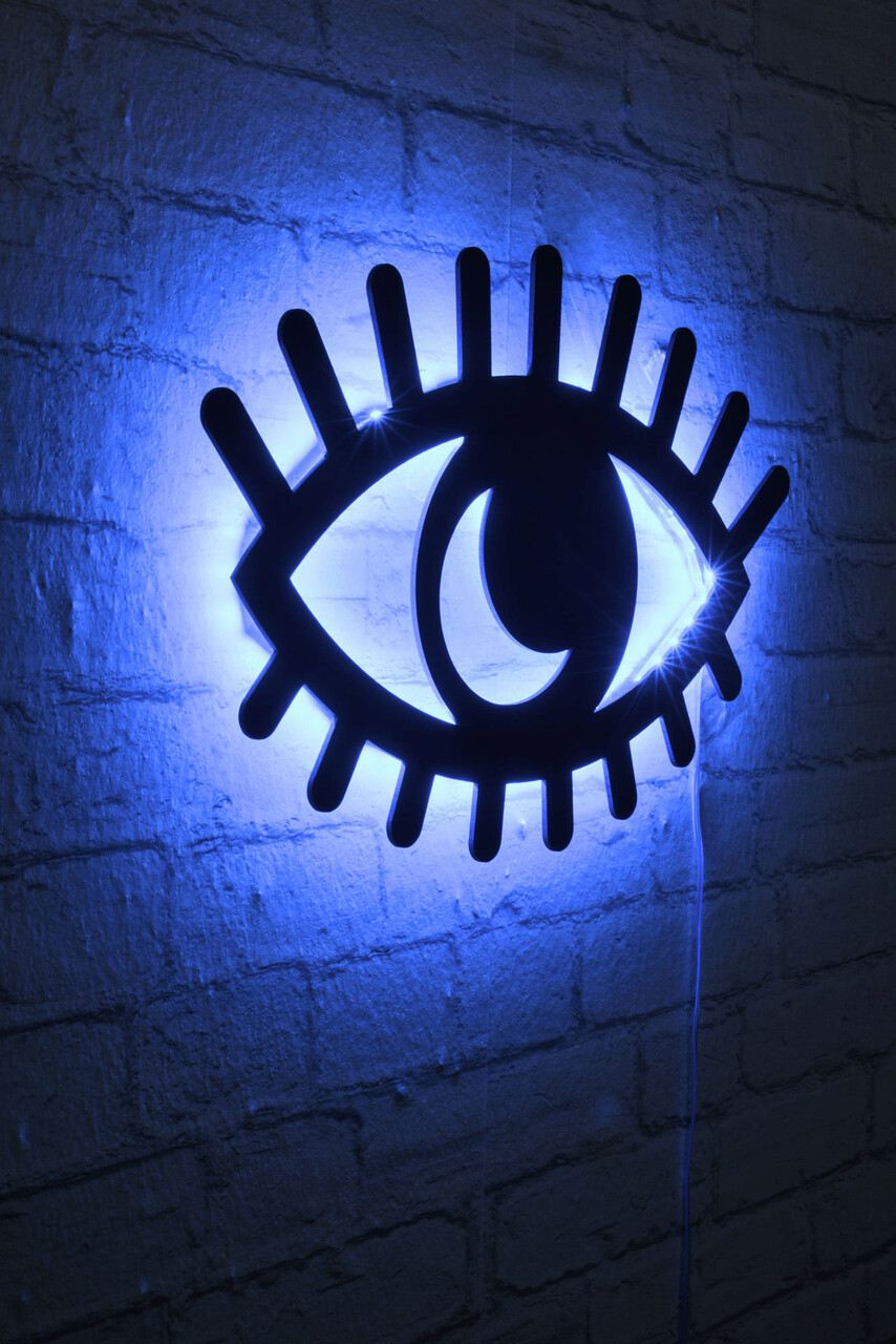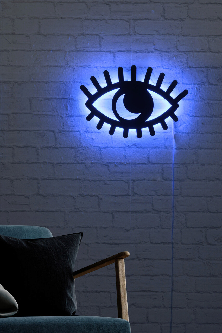 Decoratiune luminoasa LED, Evil Eye, MDF, 60 LED-uri, Albastru