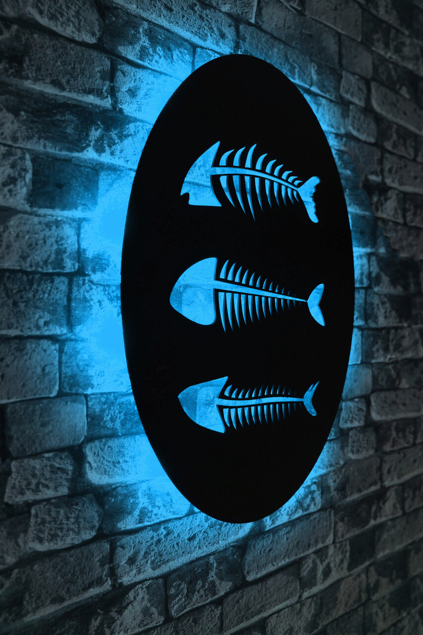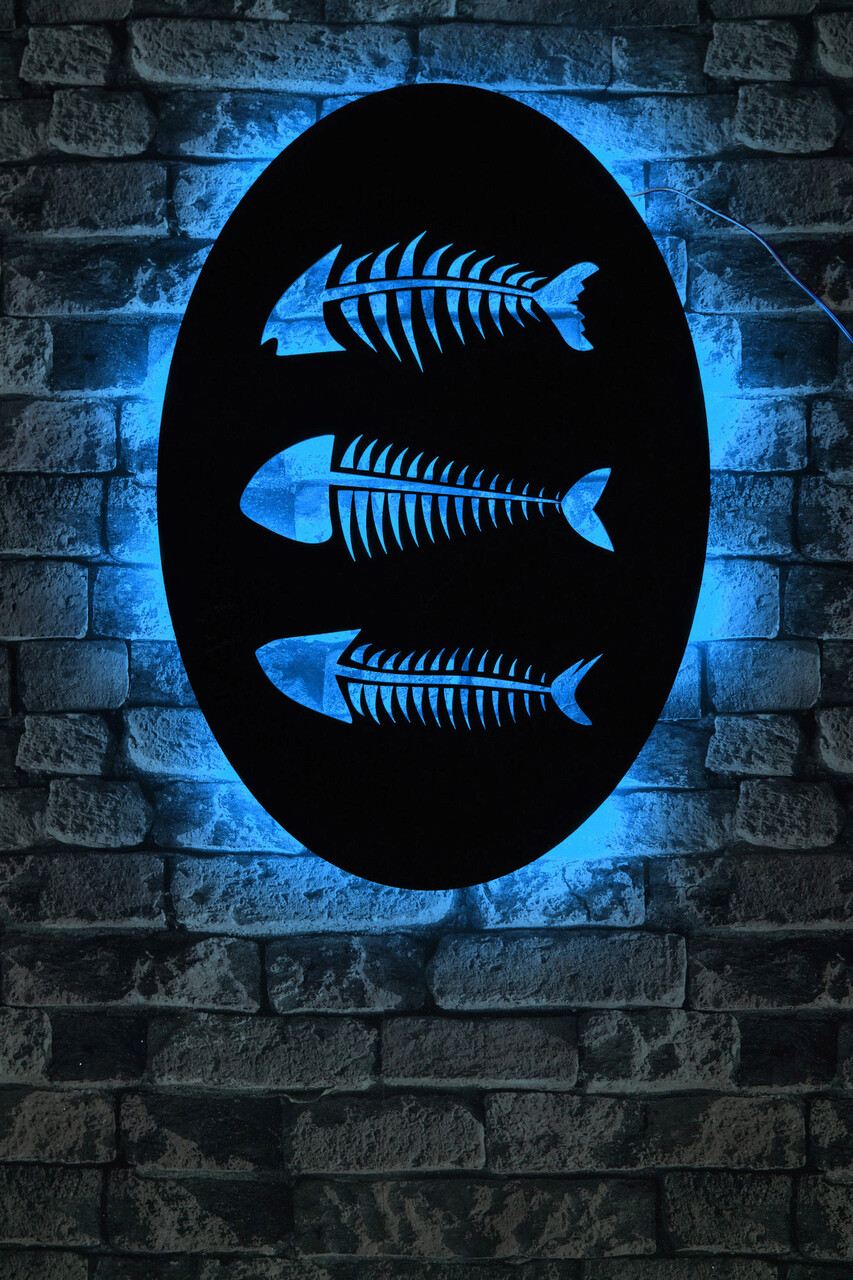 Decoratiune luminoasa LED, Fishbones, MDF, 60 LED-uri, Albastru