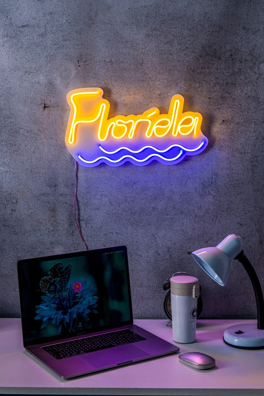 Decoratiune luminoasa LED, Florida, Benzi flexibile de neon, DC 12 V, Galben / Albastru