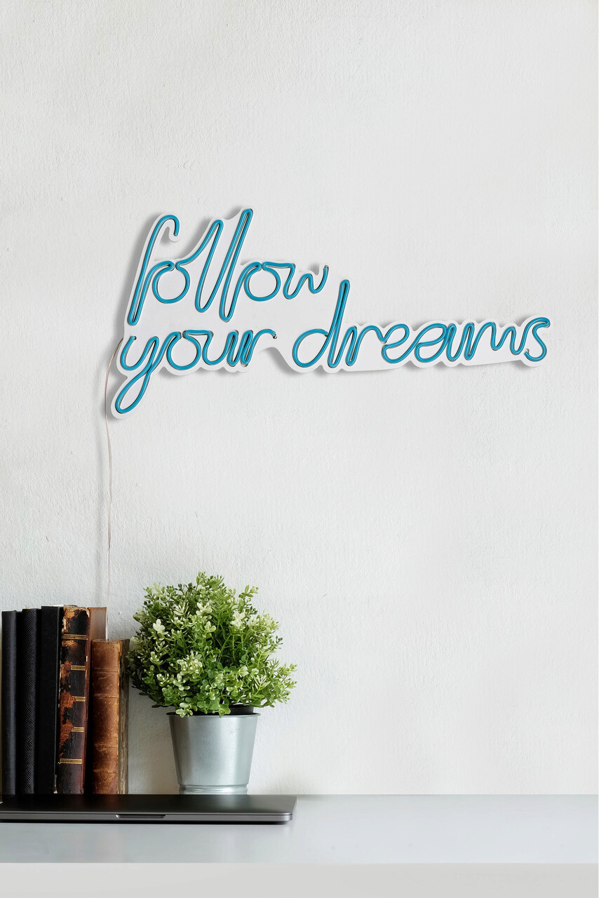 Decoratiune luminoasa LED, Follow Your Dreams, Benzi flexibile de neon, DC 12 V, Albastru