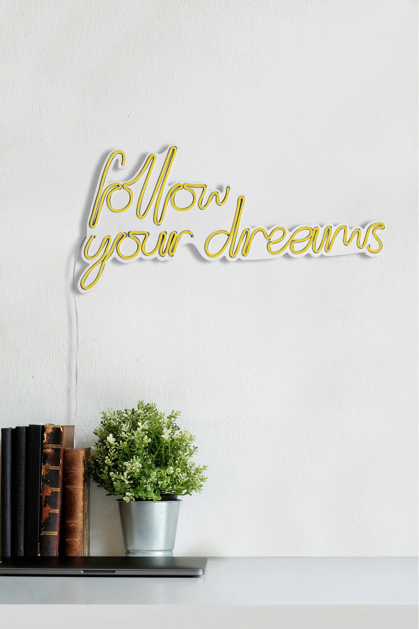 Decoratiune luminoasa LED, Follow Your Dreams, Benzi flexibile de neon, DC 12 V, Galben