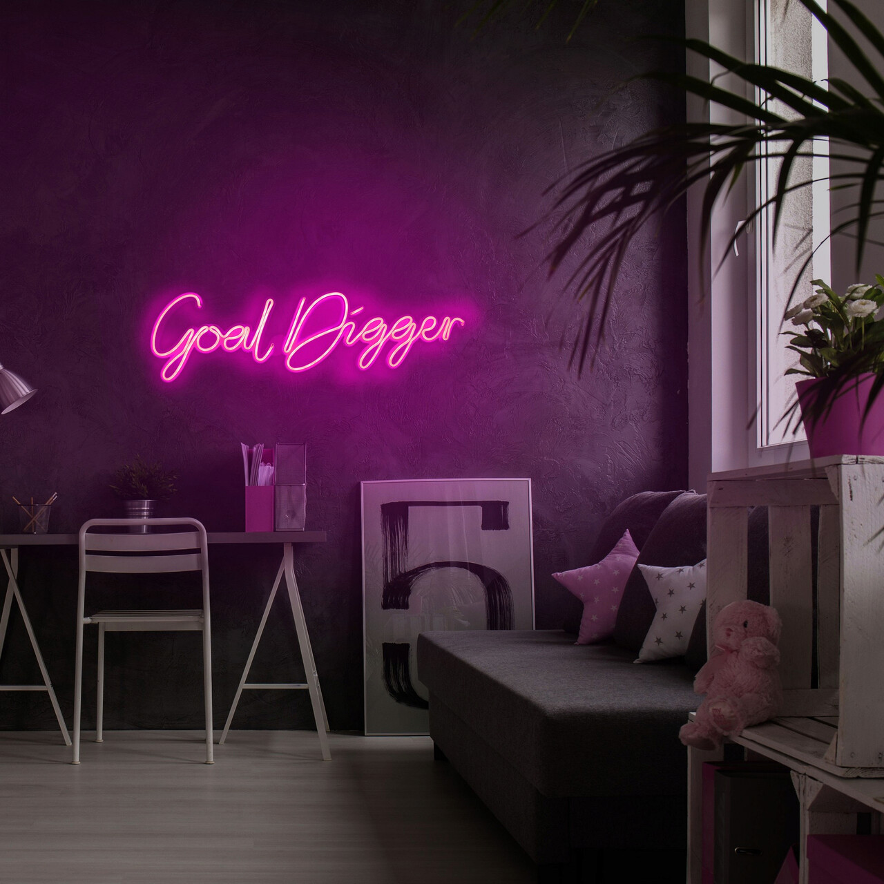 Decoratiune luminoasa LED, Goal Digger, Benzi flexibile de neon, DC 12 V, Roz