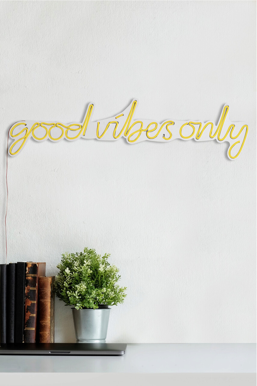Decoratiune luminoasa LED, Good Vibes Only, Benzi flexibile de neon, DC 12 V, Galben