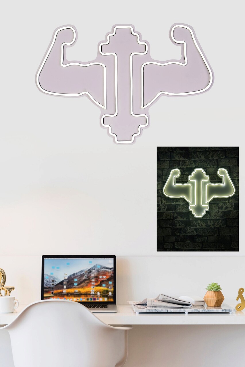 Decoratiune luminoasa LED, Gym Dumbbells WorkOut, Benzi flexibile de neon, DC 12 V, Alb