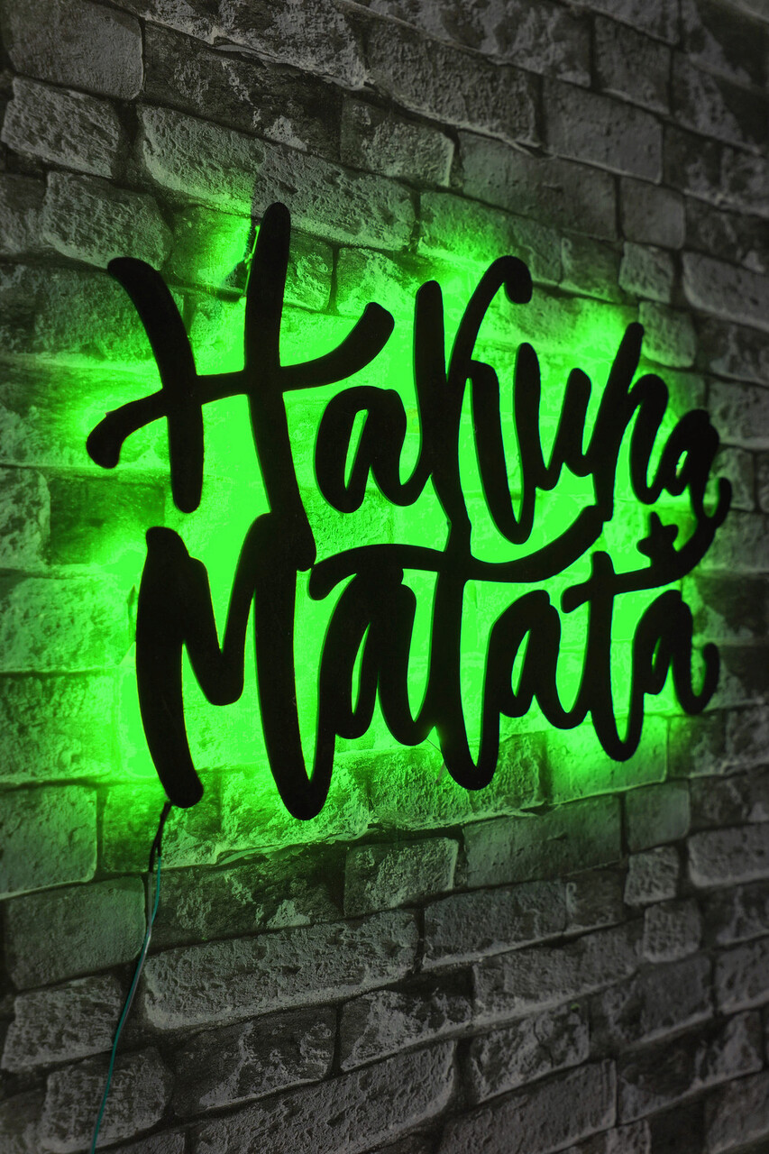 Decoratiune luminoasa LED, Hakuna Matata, MDF, 60 LED-uri, Verde