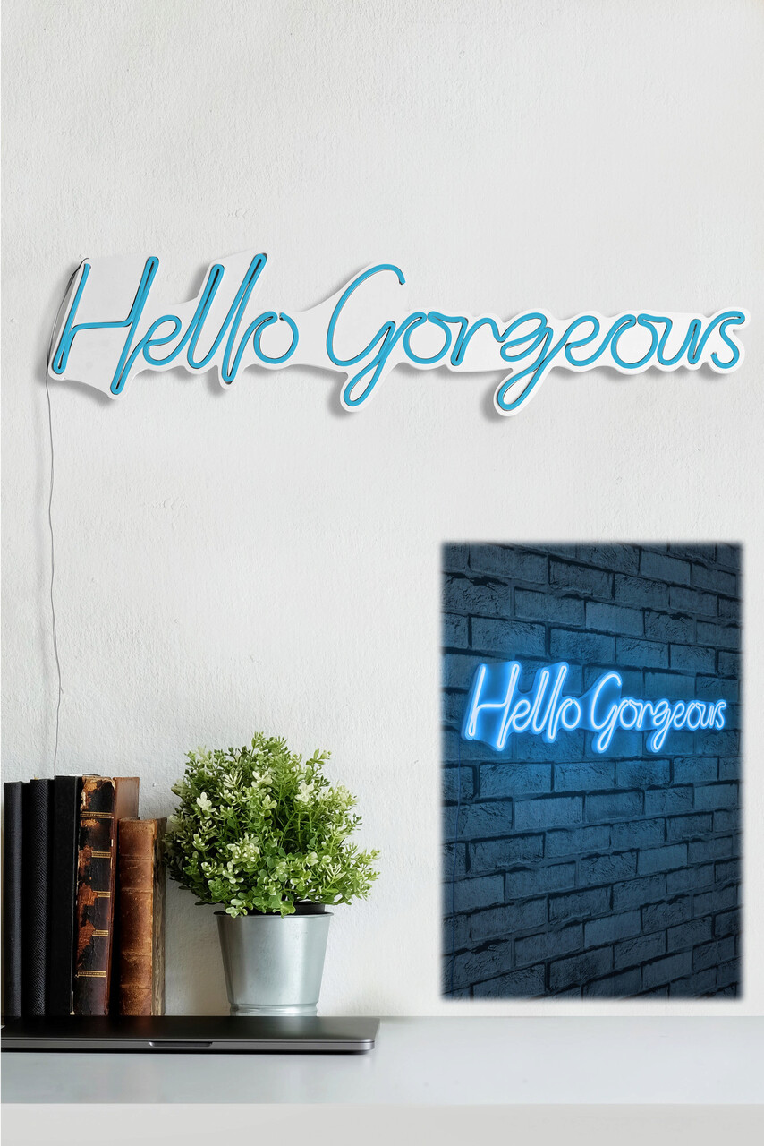 Decoratiune luminoasa LED, Hello Gorgeous, Benzi flexibile de neon, DC 12 V, Albastru