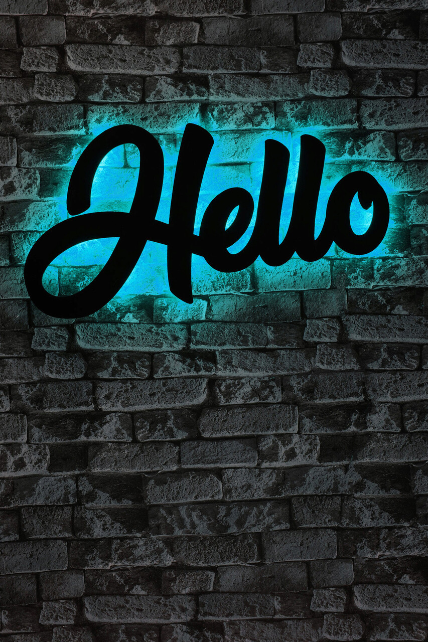 Decoratiune luminoasa LED, Hello, MDF, 60 LED-uri, Albastru