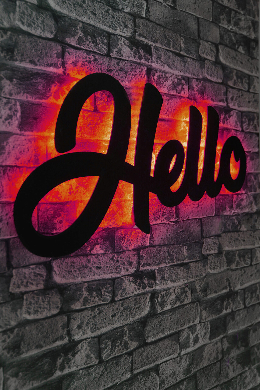 Decoratiune luminoasa LED, Hello, MDF, 60 LED-uri, Rosu