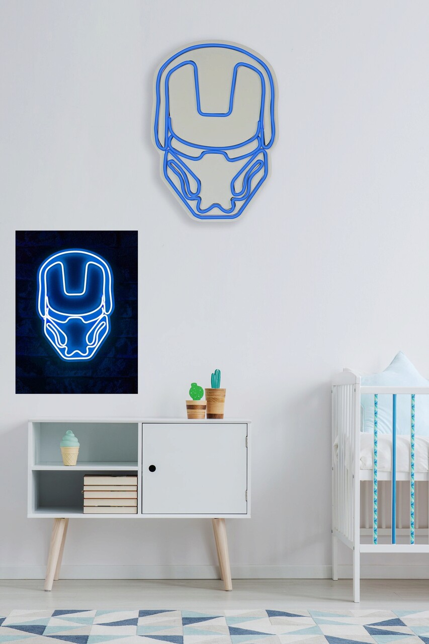 Decoratiune luminoasa LED, Iron Man, Benzi flexibile de neon, DC 12 V, Albastru
