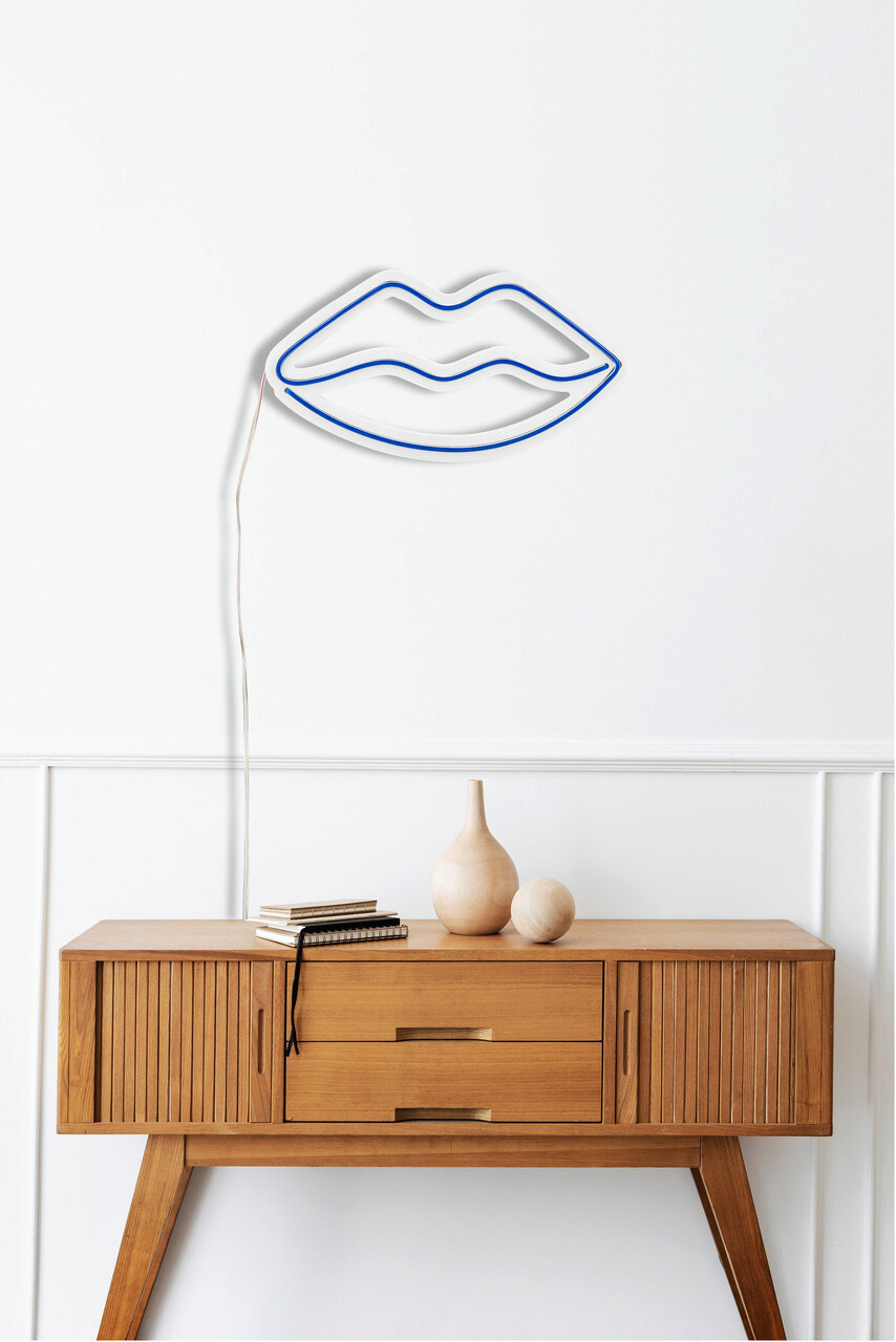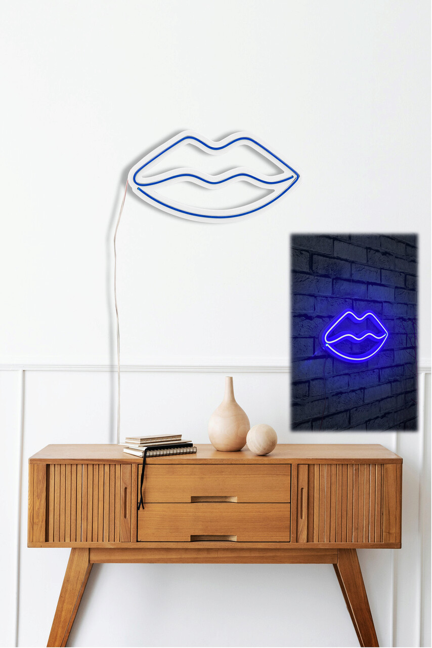 Decoratiune luminoasa LED, Lips, Benzi flexibile de neon, DC 12 V, Albastru