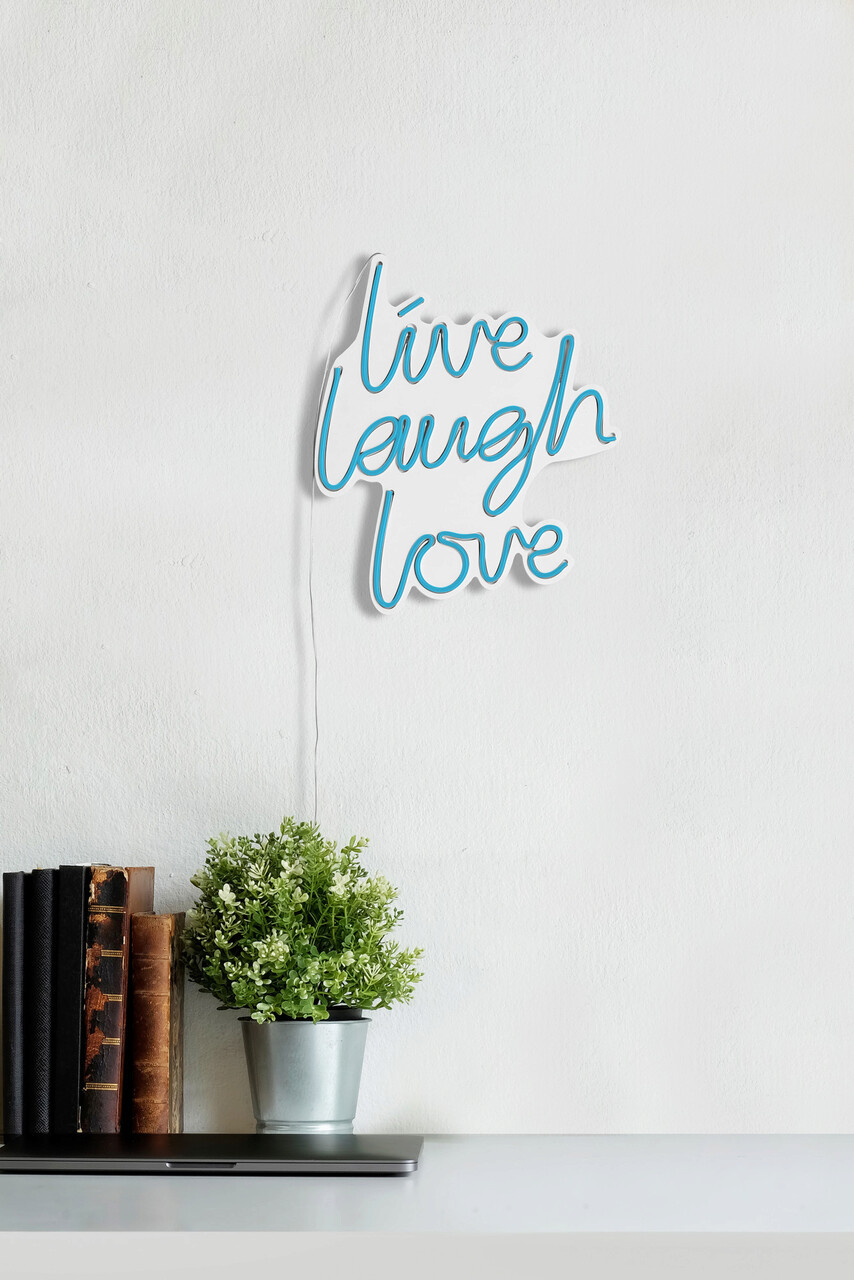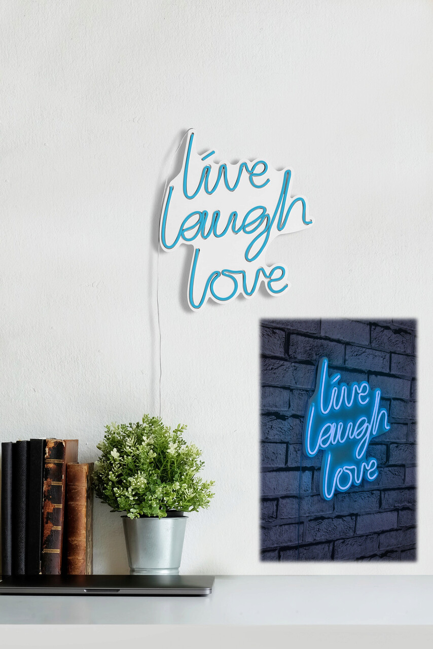 Decoratiune luminoasa LED, Live Laugh Love, Benzi flexibile de neon, DC 12 V, Albastru