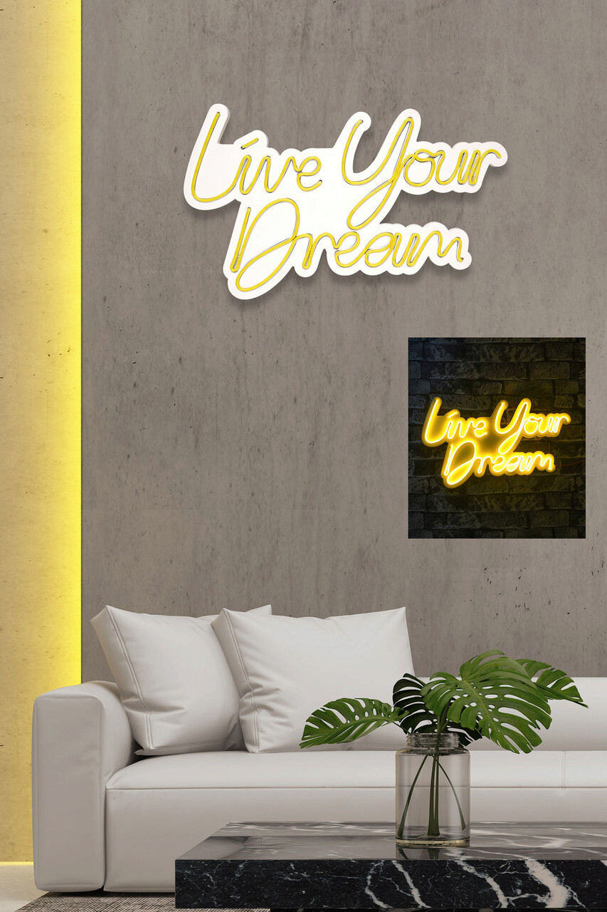 Decoratiune luminoasa LED, Live Your Dream, Benzi flexibile de neon, DC 12 V, Galben