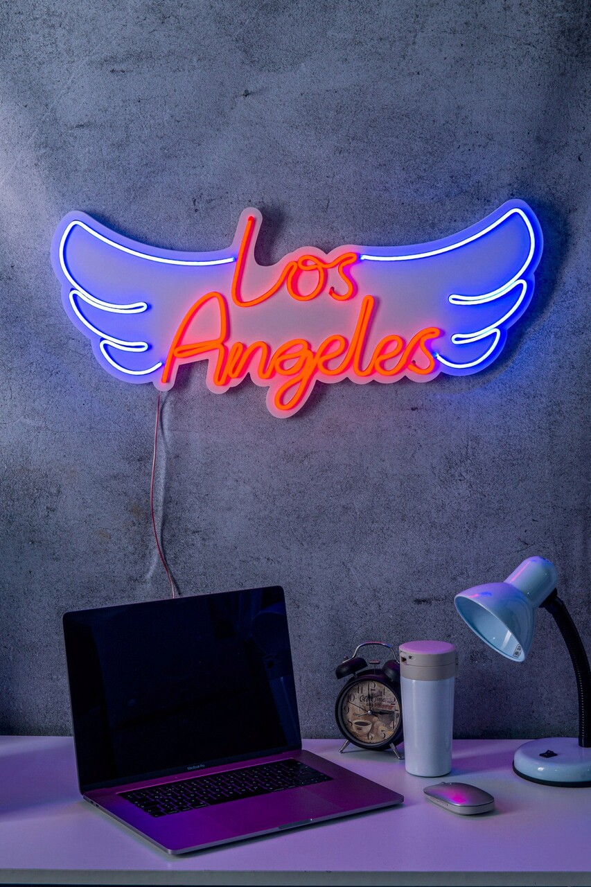 Decoratiune luminoasa LED, Los Angeles, Benzi flexibile de neon, DC 12 V, Rosu albastru