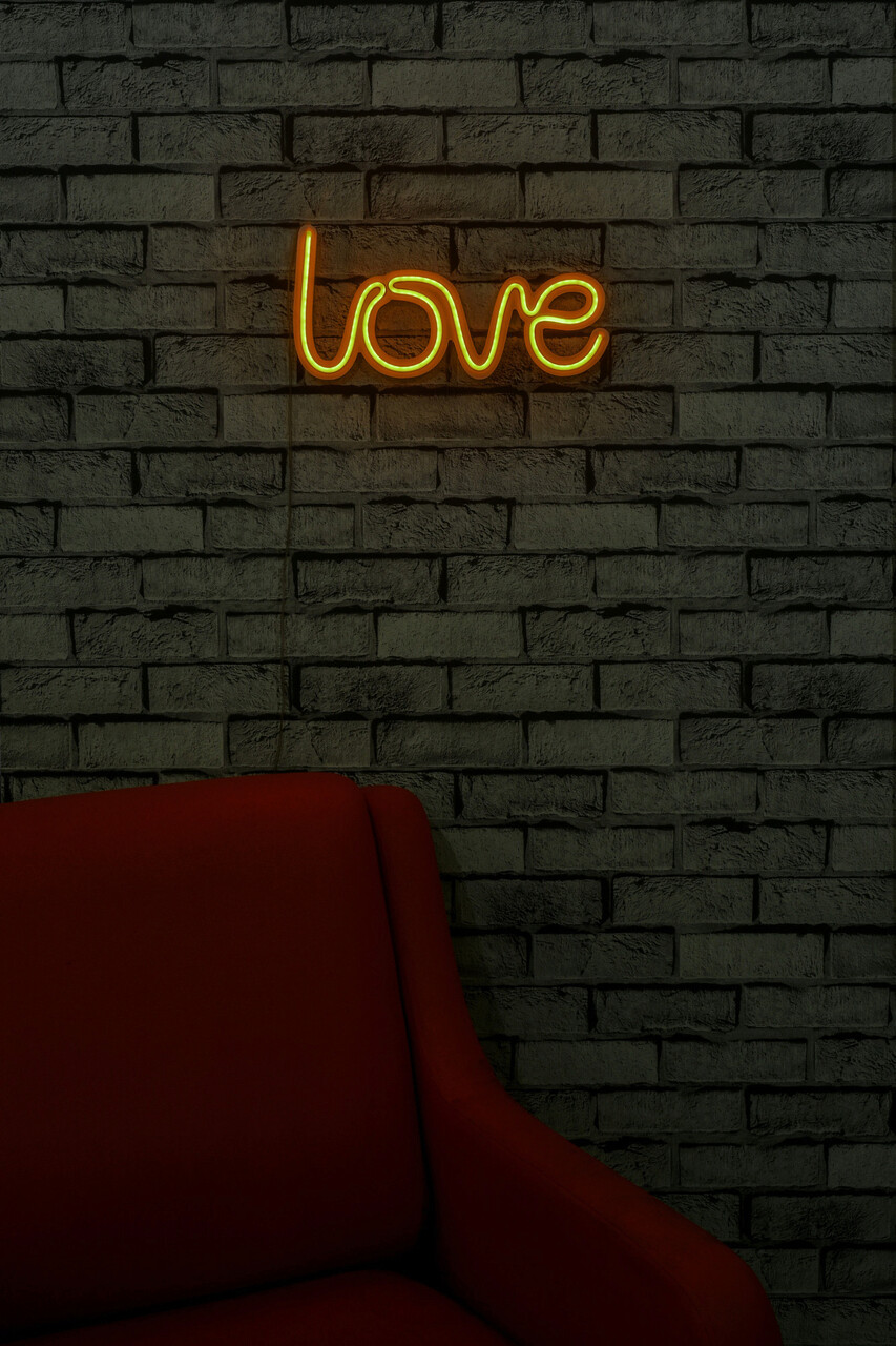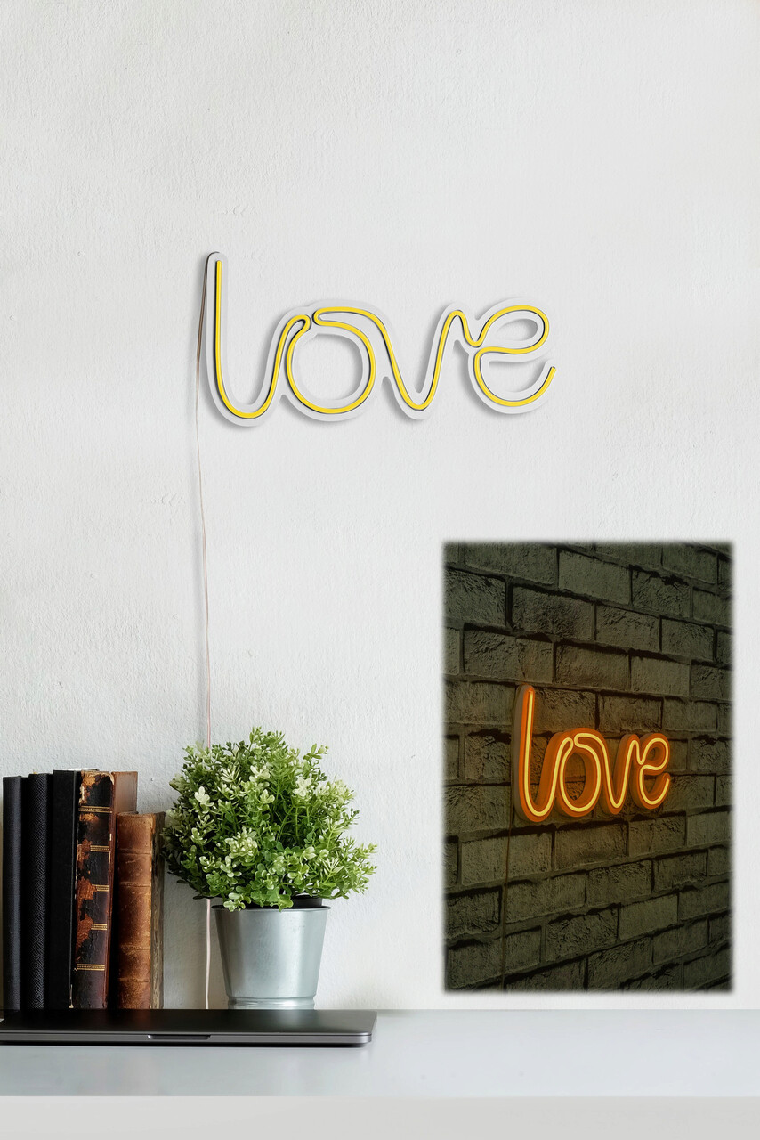 Decoratiune luminoasa LED, Love, Benzi flexibile de neon, DC 12 V, Galben