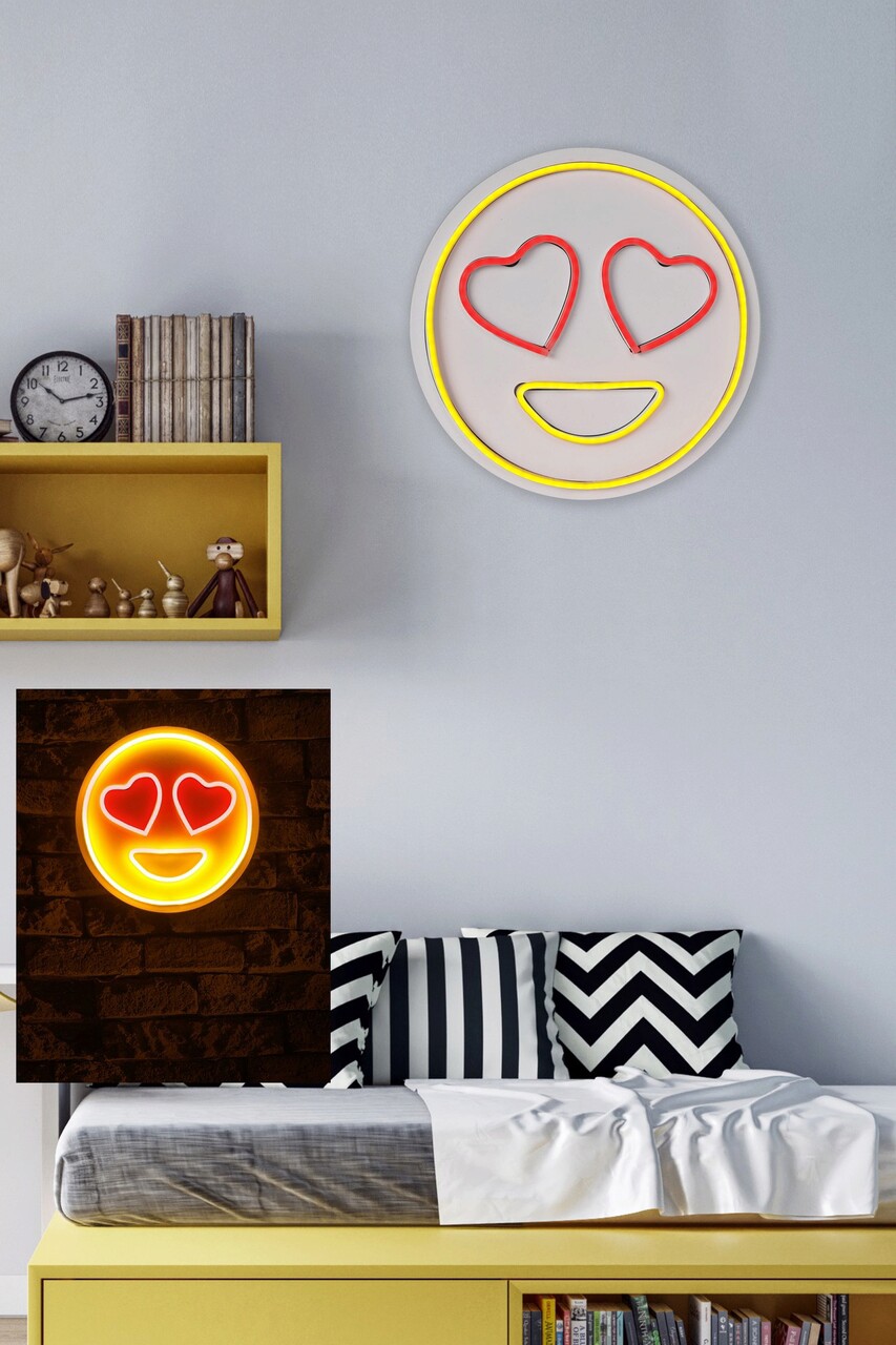 Decoratiune luminoasa LED, Love Smile, Benzi flexibile de neon, DC 12 V, Roșu / galben
