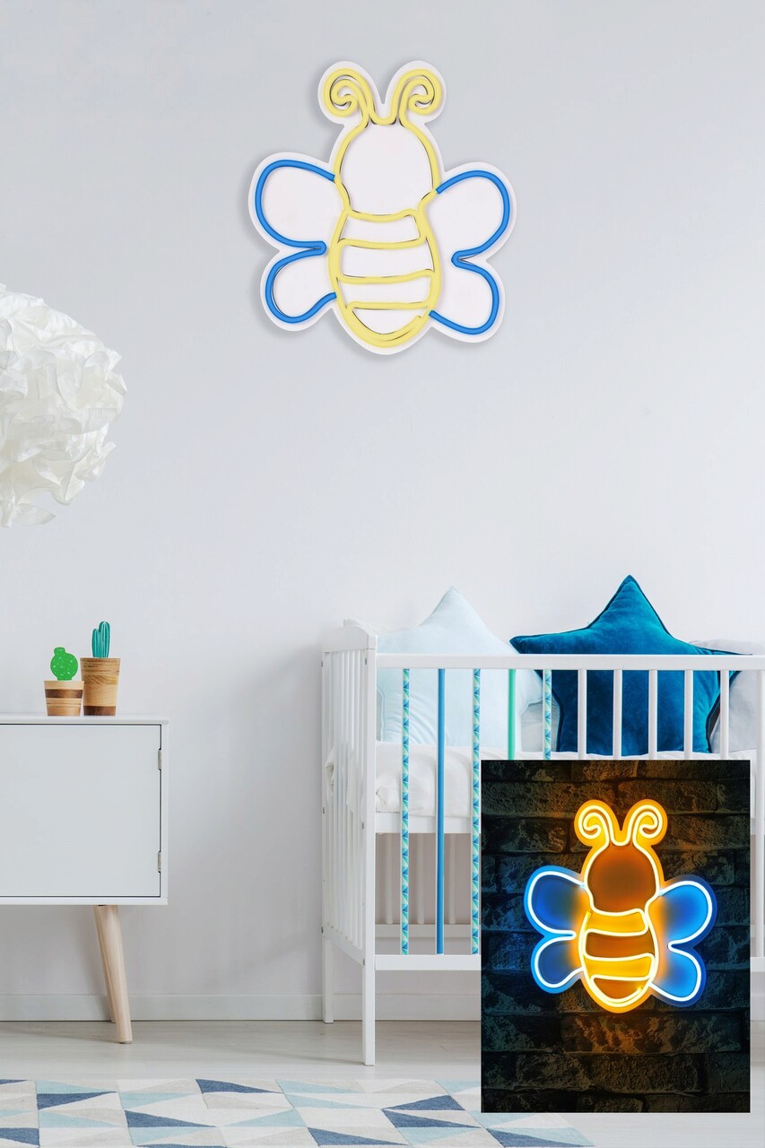 Decoratiune luminoasa LED, Maya The Bee, Benzi flexibile de neon, DC 12 V, Albastru/Galben