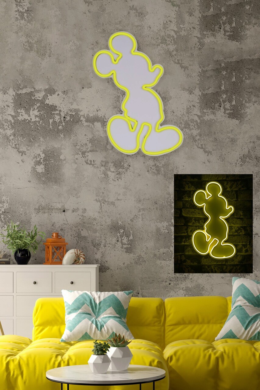 Decoratiune luminoasa LED, Mickey Mouse, Benzi flexibile de neon, DC 12 V, Galben