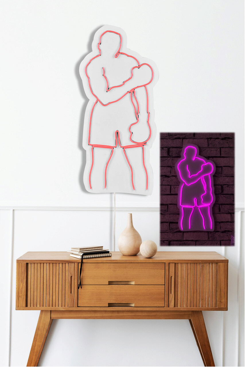 Decoratiune luminoasa LED, Muhammed Ali, Benzi flexibile de neon, DC 12 V, Roz