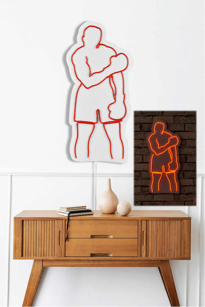 Decoratiune luminoasa LED, Muhammed Ali, Benzi flexibile de neon, DC 12 V, Rosu