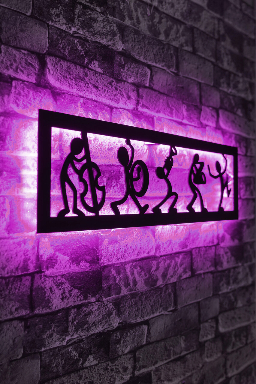 Decoratiune luminoasa LED, Music Band, MDF, 60 LED-uri, Roz