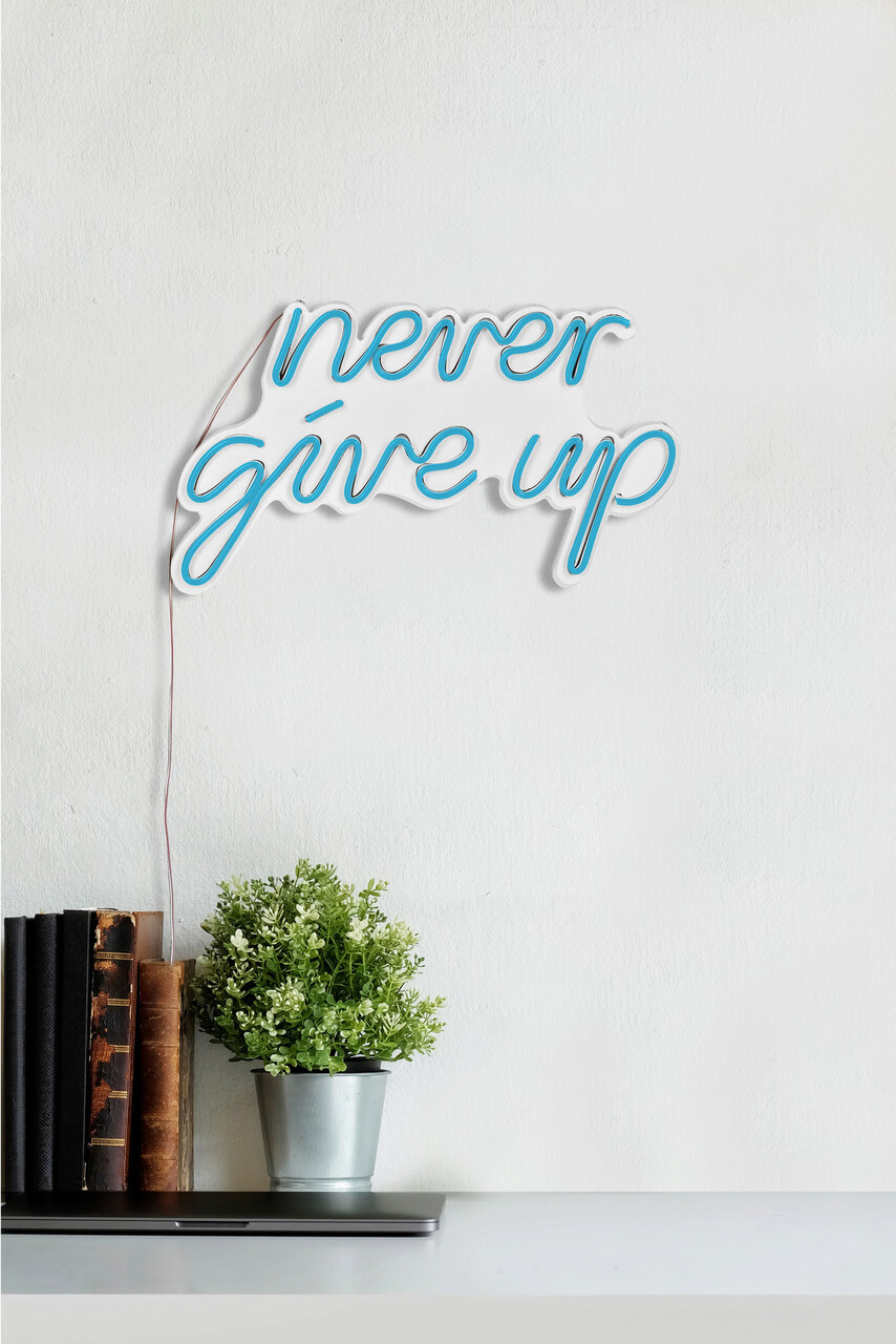 Decoratiune luminoasa LED, Never Give Up, Benzi flexibile de neon, DC 12 V, Albastru