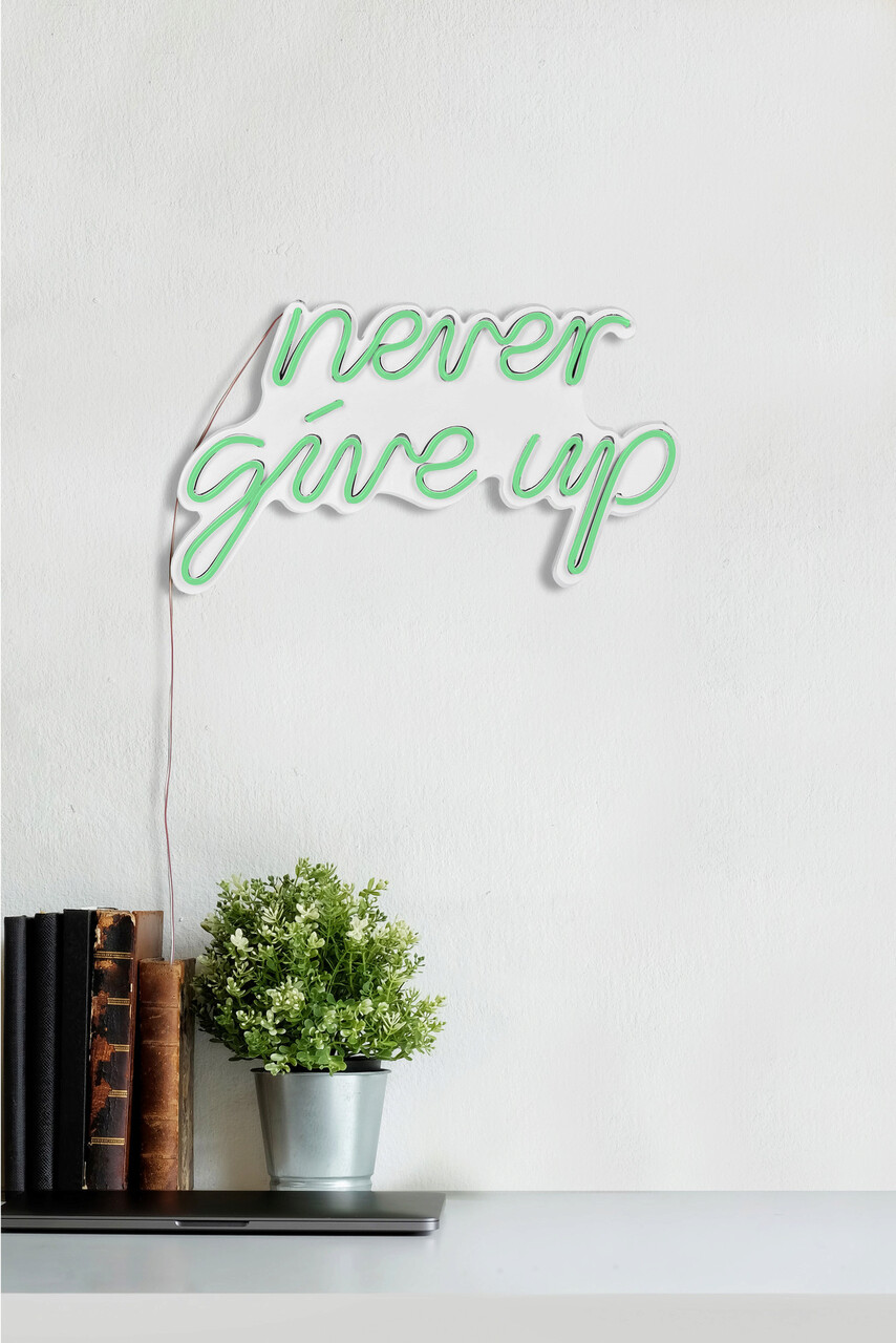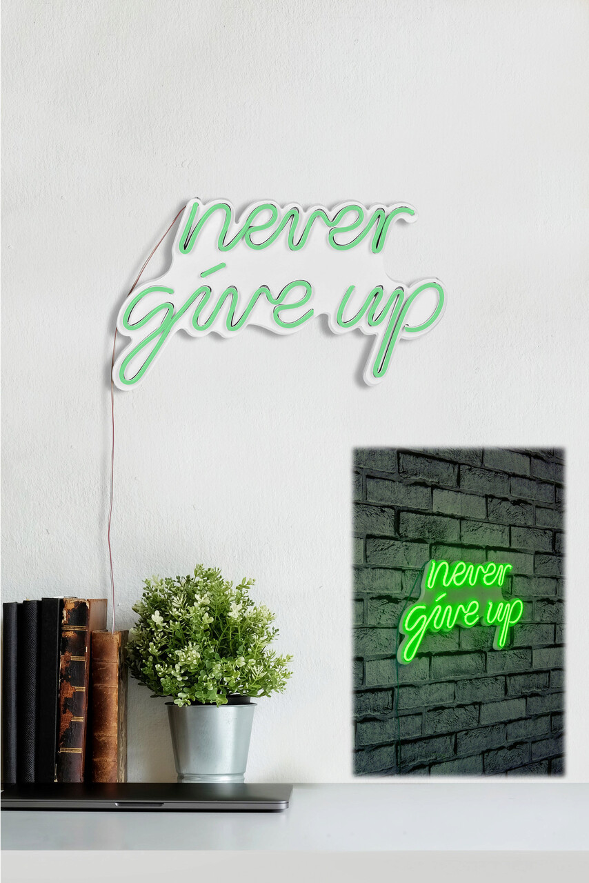 Decoratiune luminoasa LED, Never Give Up, Benzi flexibile de neon, DC 12 V, Verde