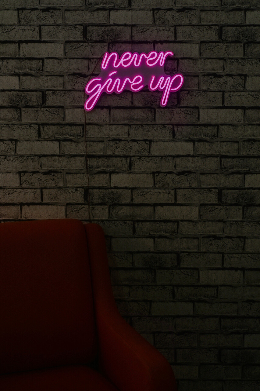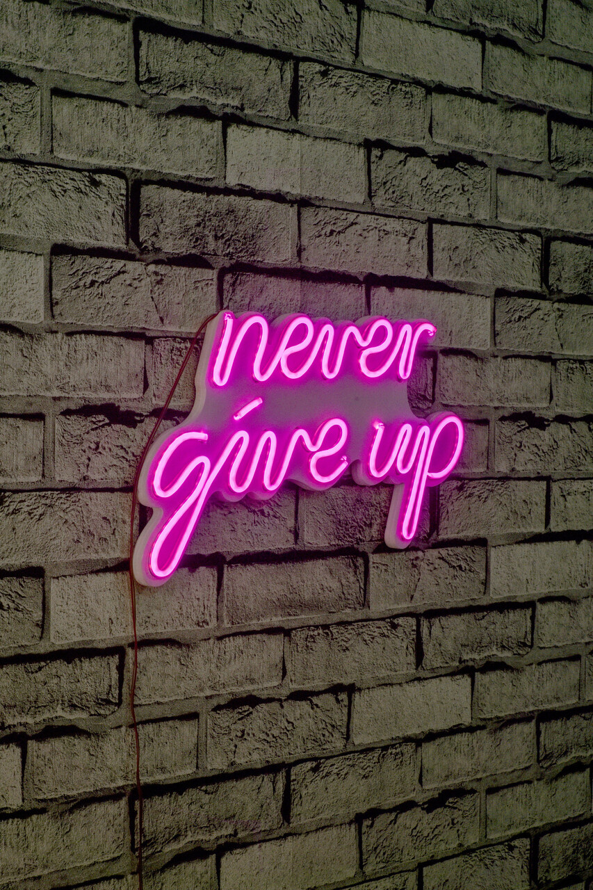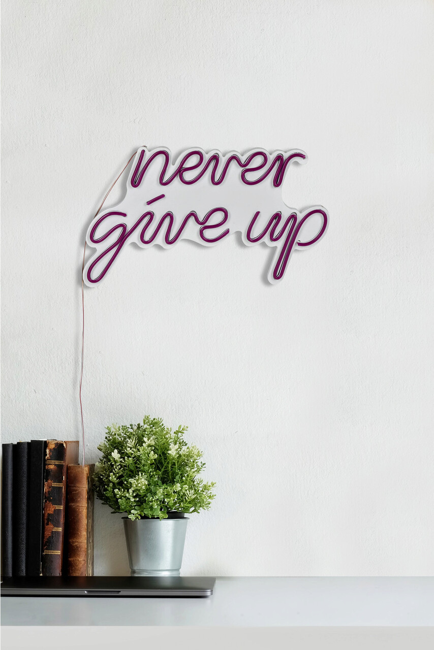 Decoratiune luminoasa LED, Never Give Up, Benzi flexibile de neon, DC 12 V, Roz
