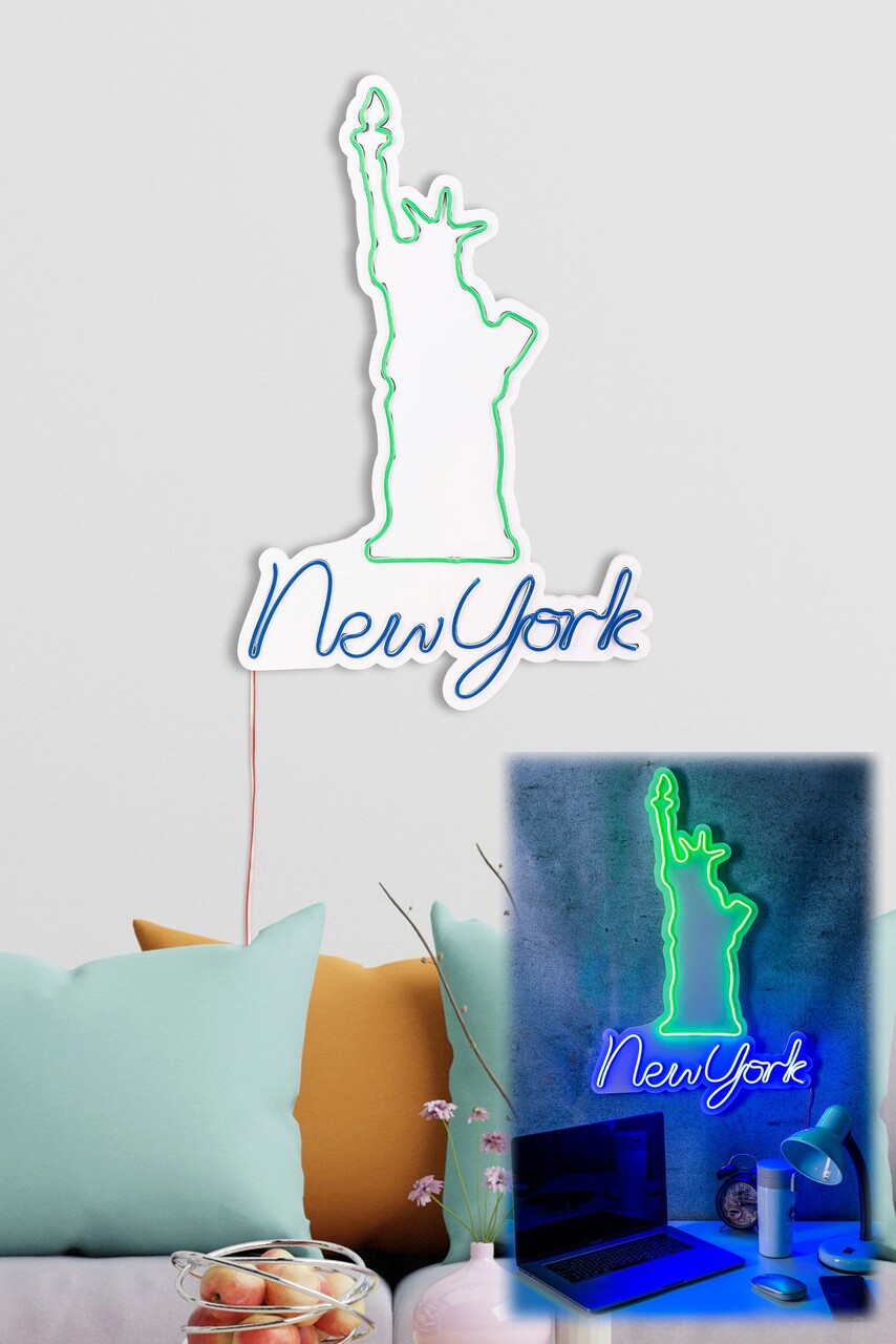 Decoratiune luminoasa LED, New York, Benzi flexibile de neon, DC 12 V, Verde albastru
