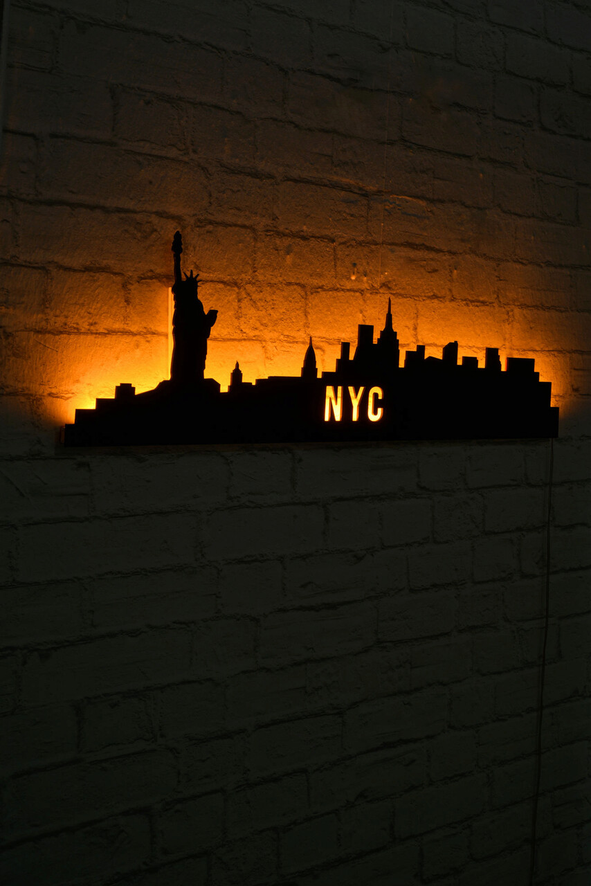 Decoratiune luminoasa LED, NYC Skyline, MDF, 60 LED-uri, Galben