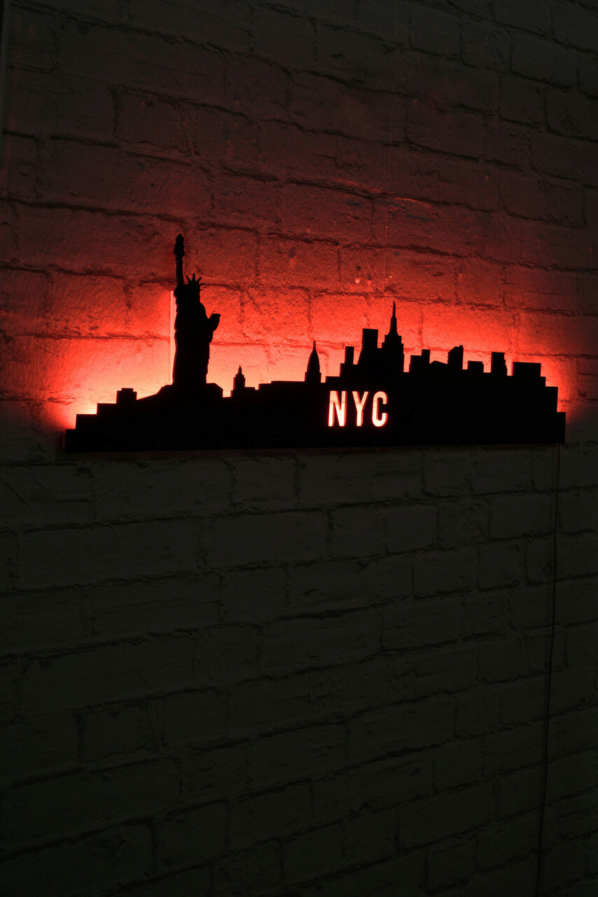 Decoratiune luminoasa LED, NYC Skyline, MDF, 60 LED-uri, Rosu