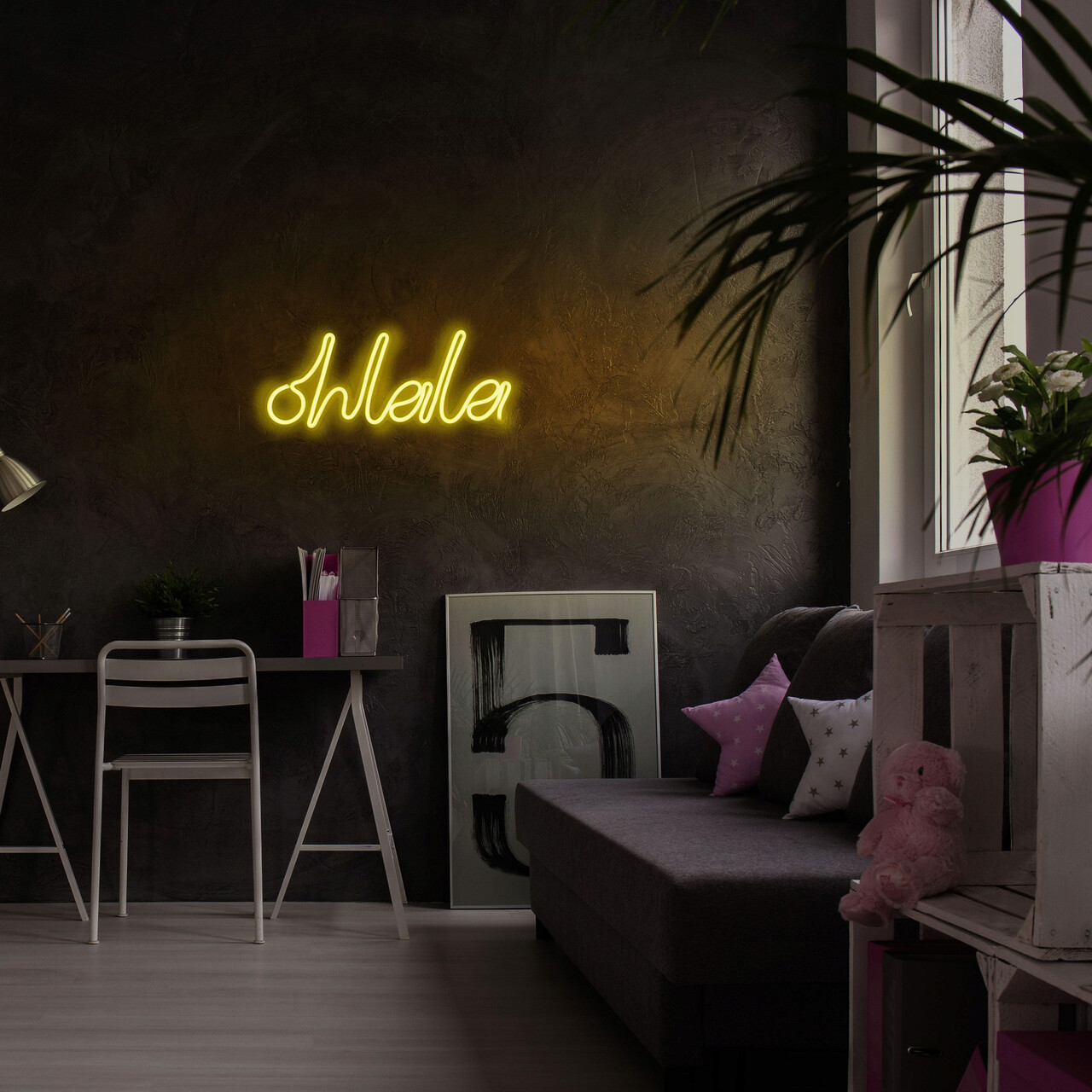 Decoratiune luminoasa LED, Oh La La, Benzi flexibile de neon, DC 12 V, Galben