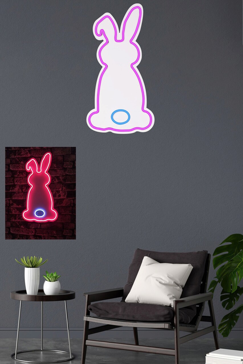 Decoratiune luminoasa LED, Rabbit, Benzi flexibile de neon, DC 12 V, Roz / Albastru