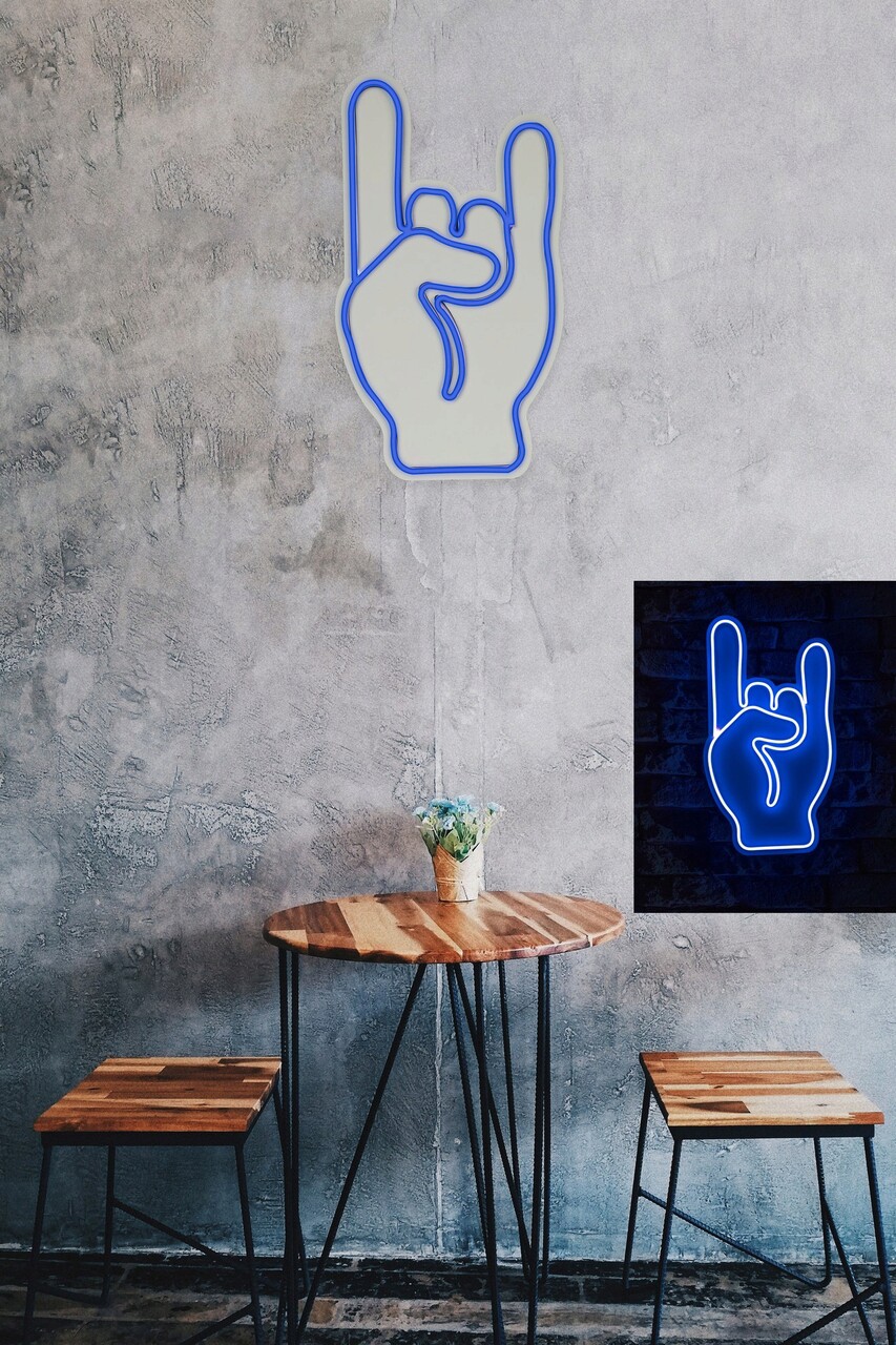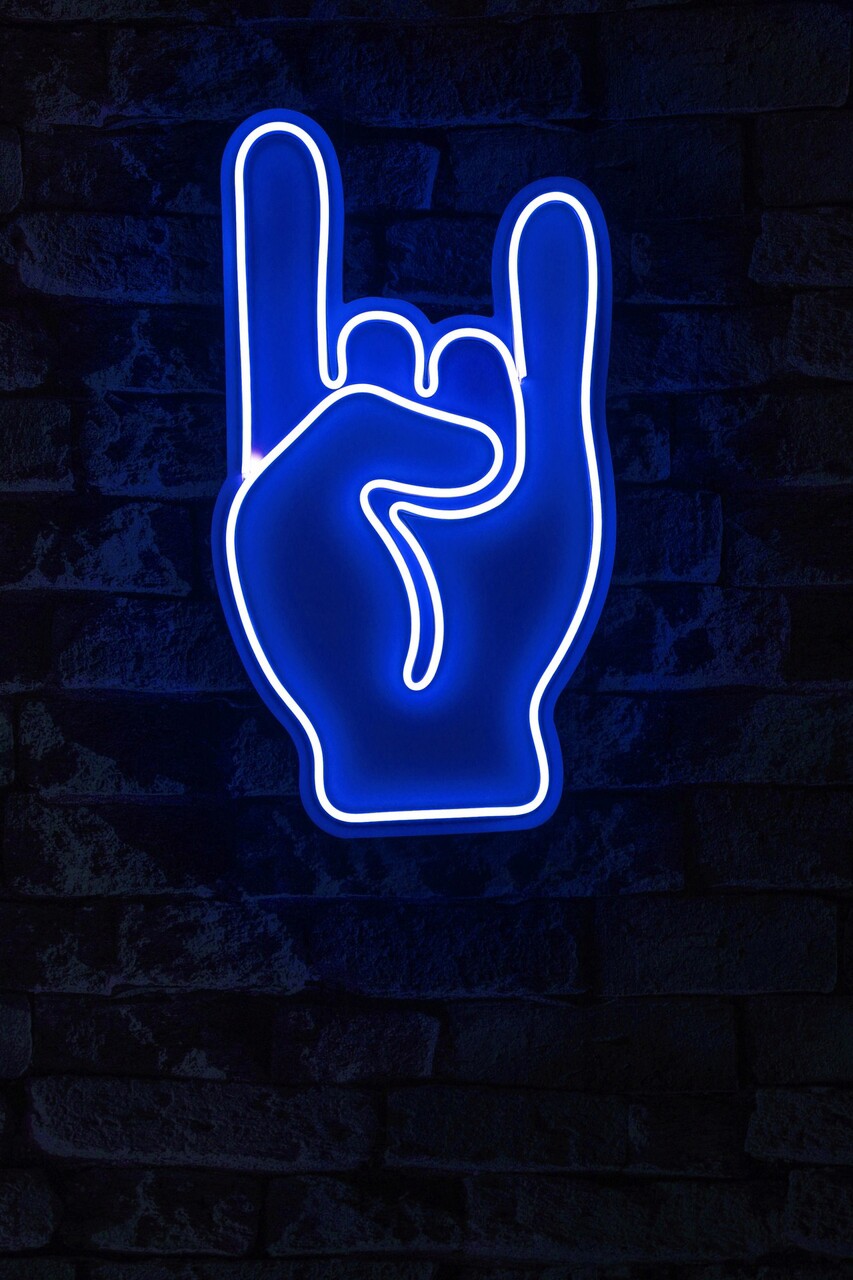 Decoratiune luminoasa LED, Rock N Roll Sign, Benzi flexibile de neon, DC 12 V, Albastru
