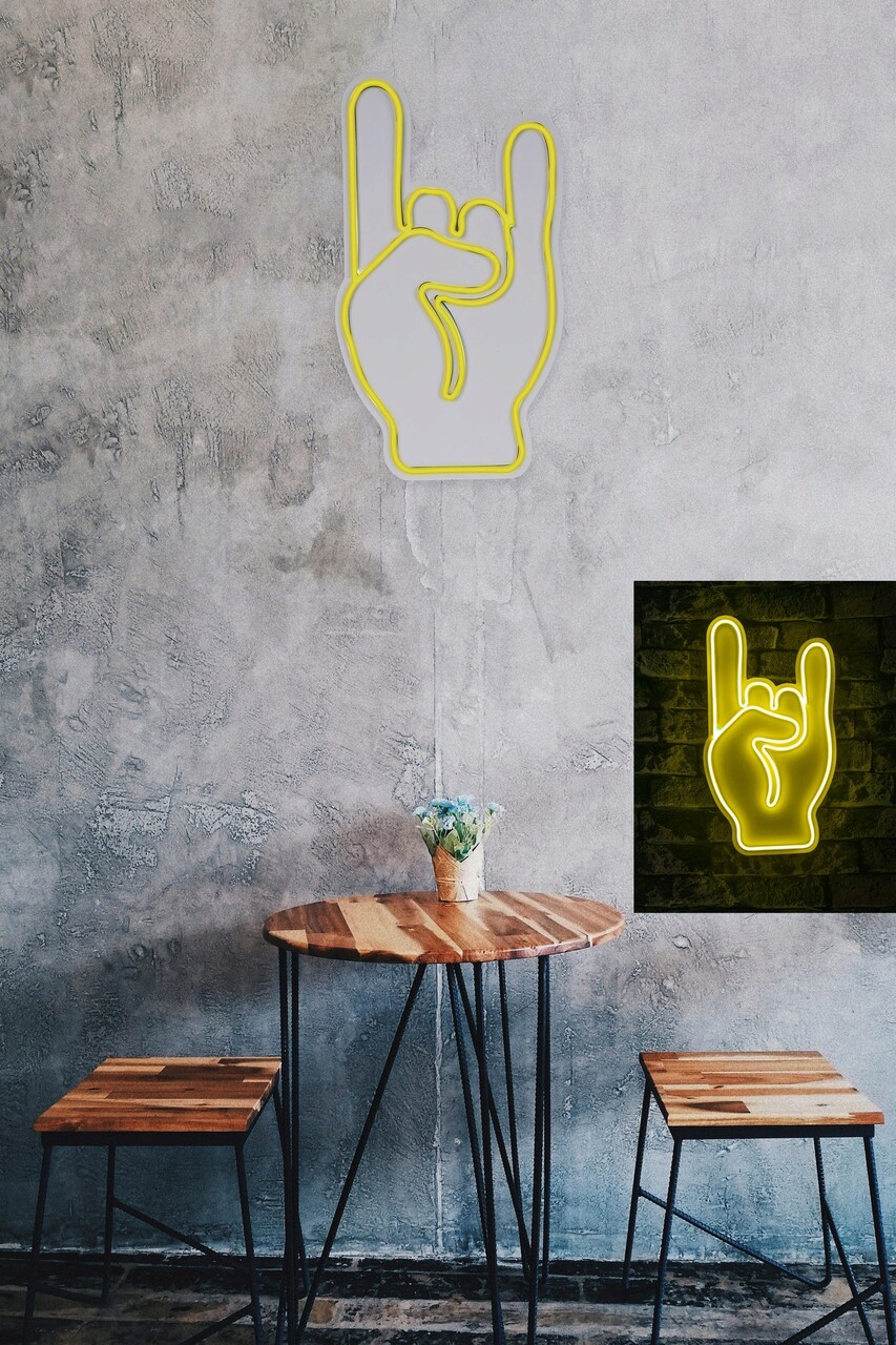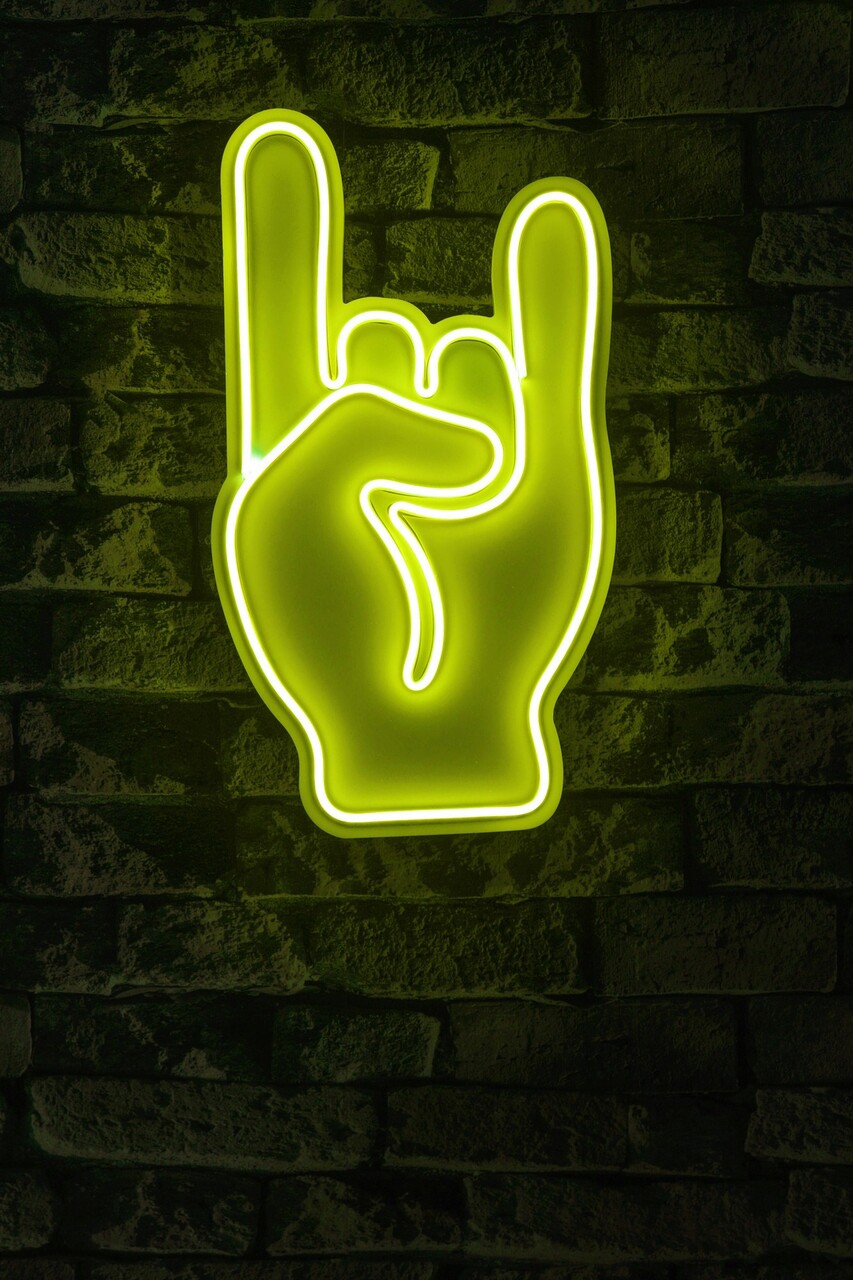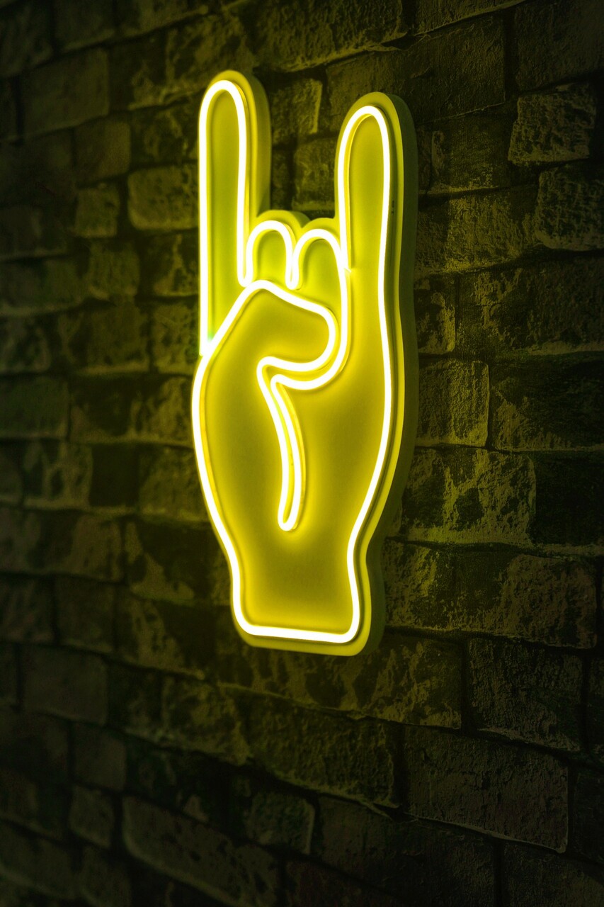 Decoratiune luminoasa LED, Rock N Roll Sign, Benzi flexibile de neon, DC 12 V, Galben