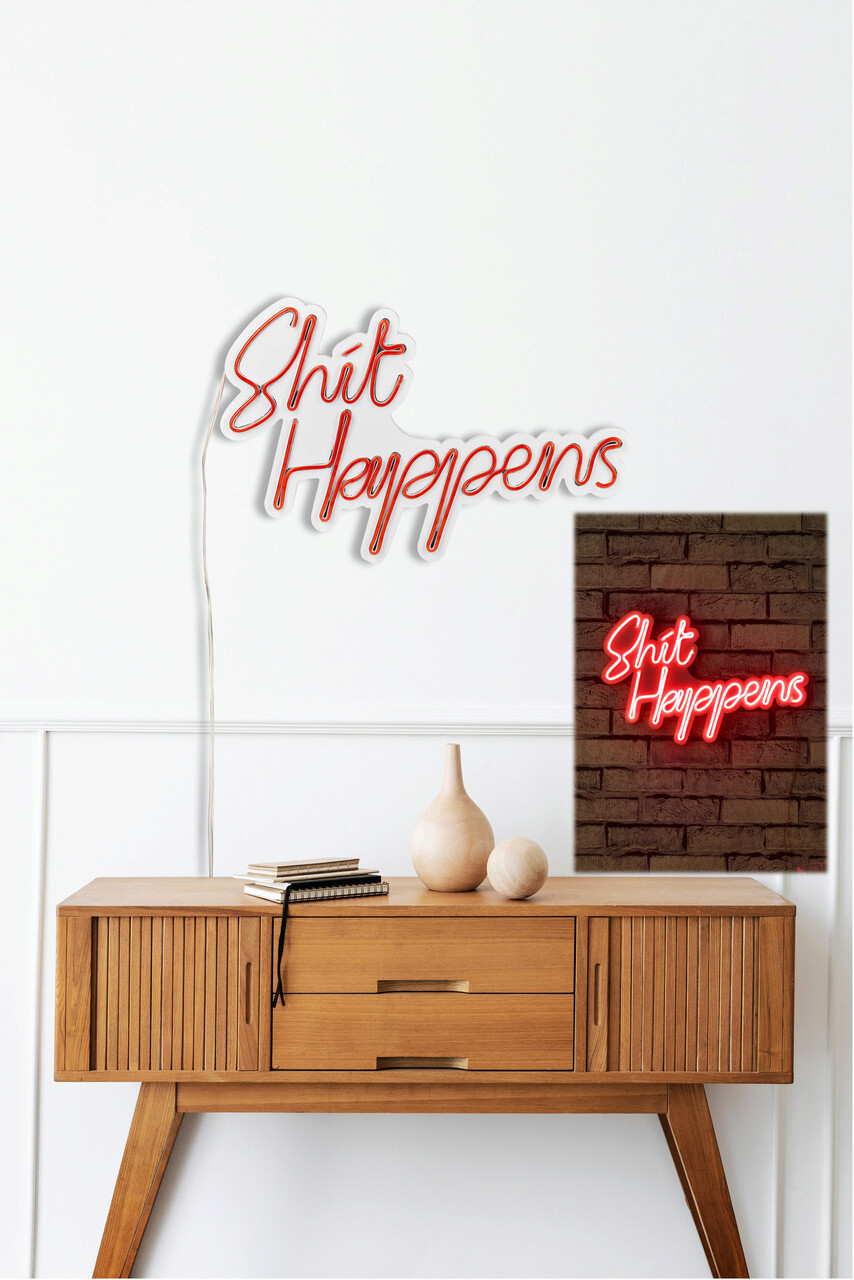 Decoratiune luminoasa LED, Shit Happens, Benzi flexibile de neon, DC 12 V, Rosu