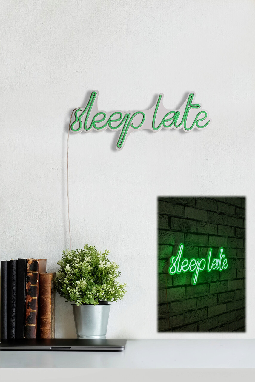 Decoratiune luminoasa LED, Sleep Late, Benzi flexibile de neon, DC 12 V, Verde