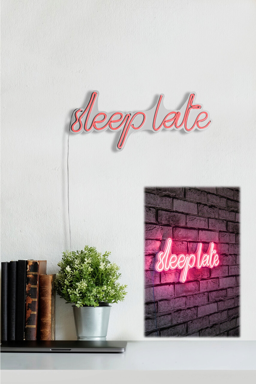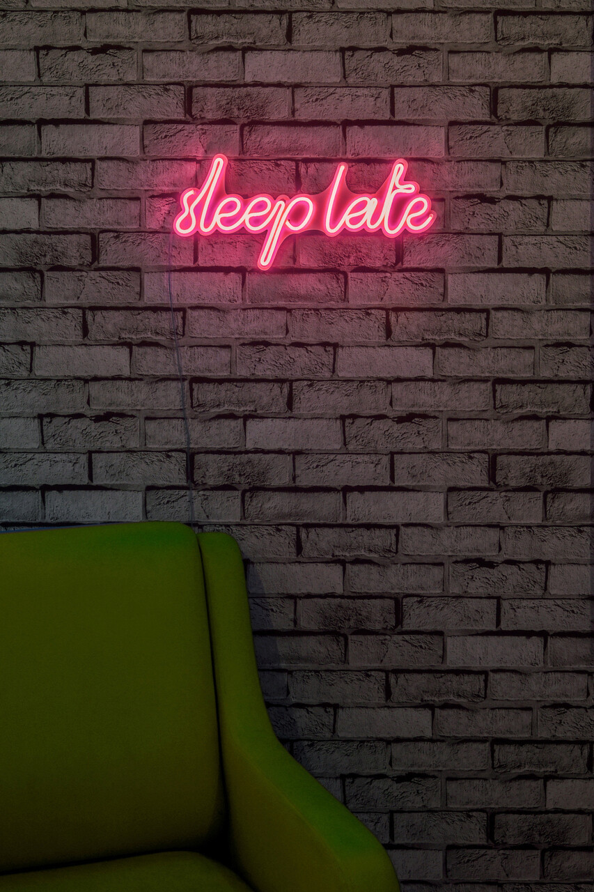Decoratiune luminoasa LED, Sleep Late, Benzi flexibile de neon, DC 12 V, Roz