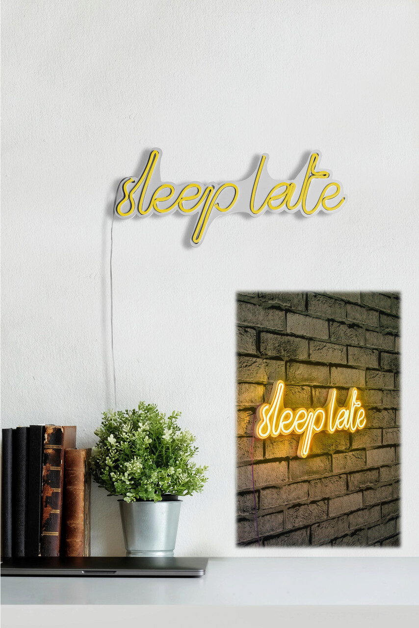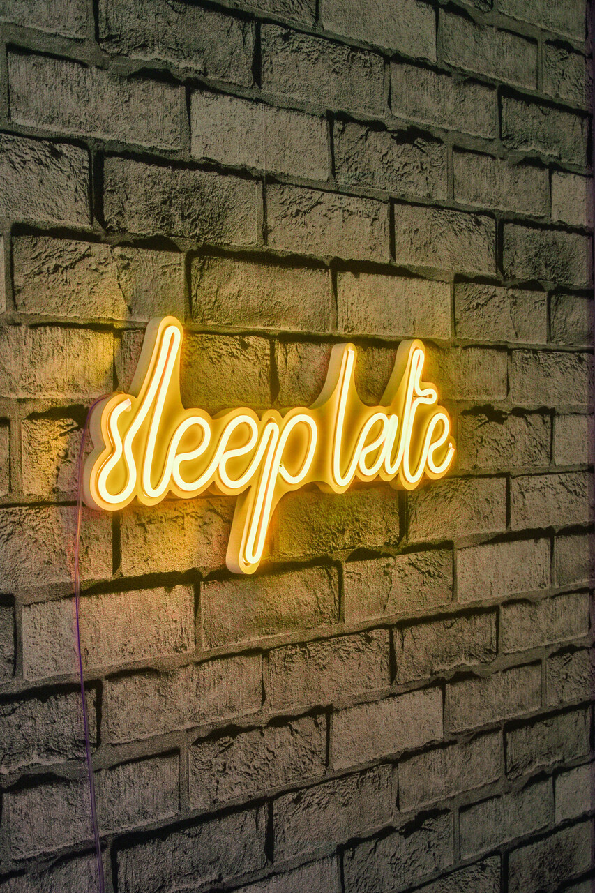 Decoratiune luminoasa LED, Sleep Late, Benzi flexibile de neon, DC 12 V, Galben